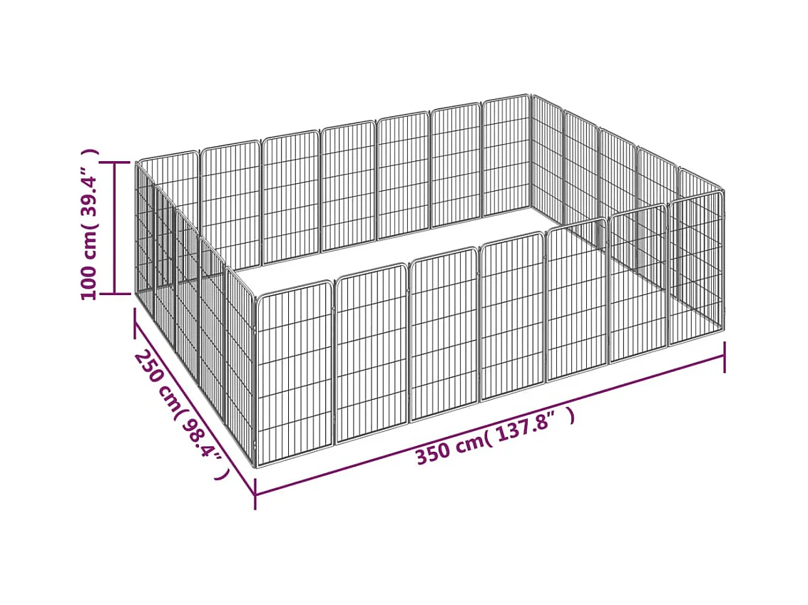 Cercadinho para cães 24 painéis 50 x 100cm aço revestido a pó preto 02_0043622