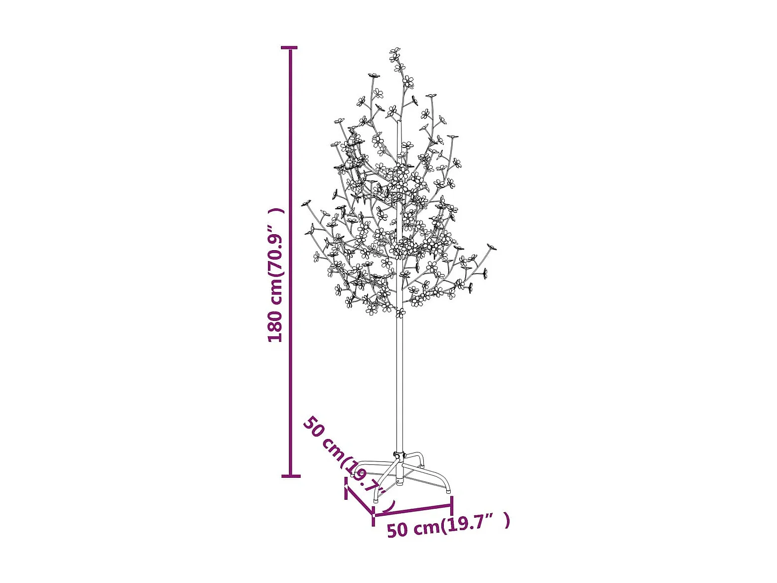 Cerejeira com 200 luzes LEDs 180 cm branco quente