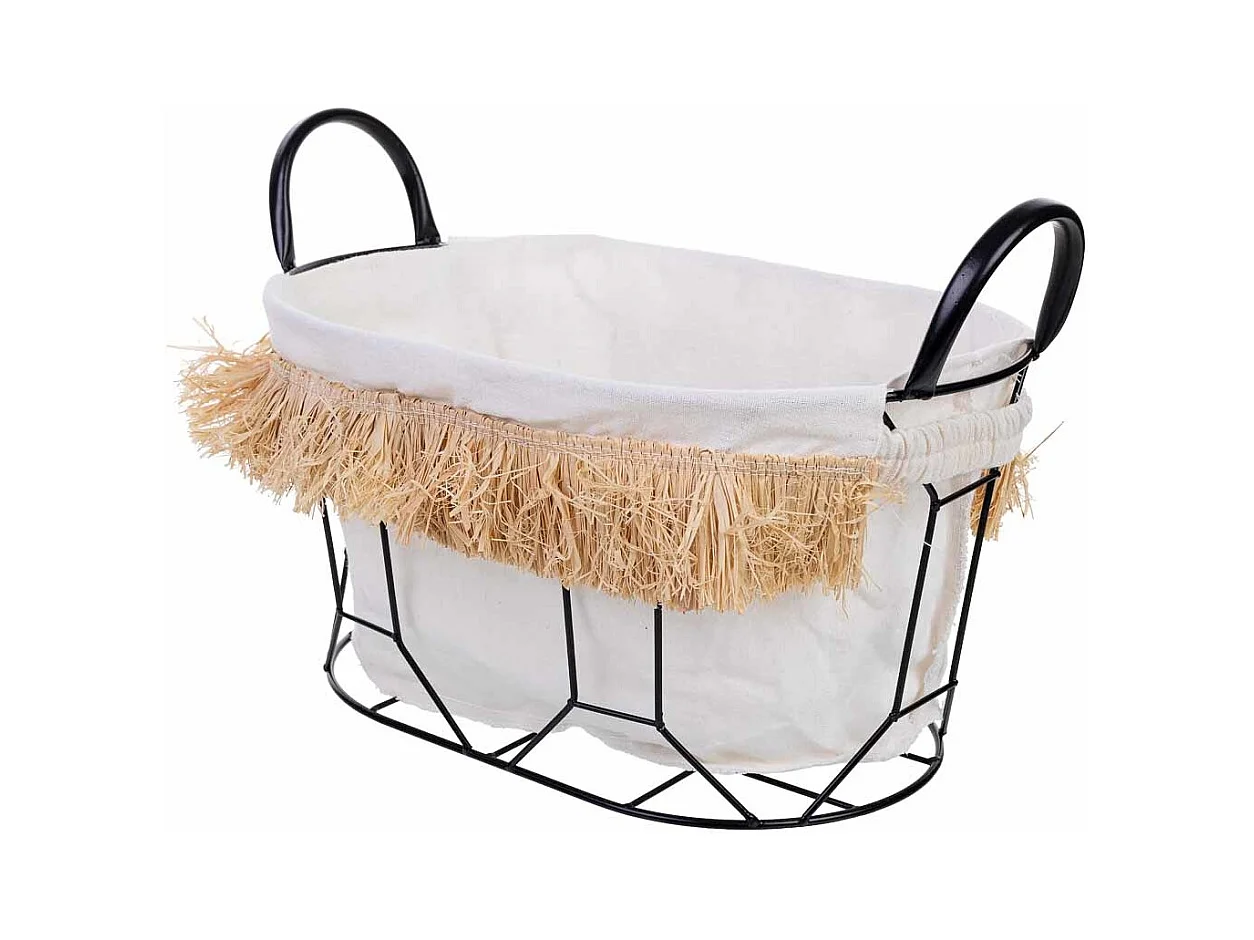 Cesto de armazenamento em metal e tecido 36x23x19/26 cm