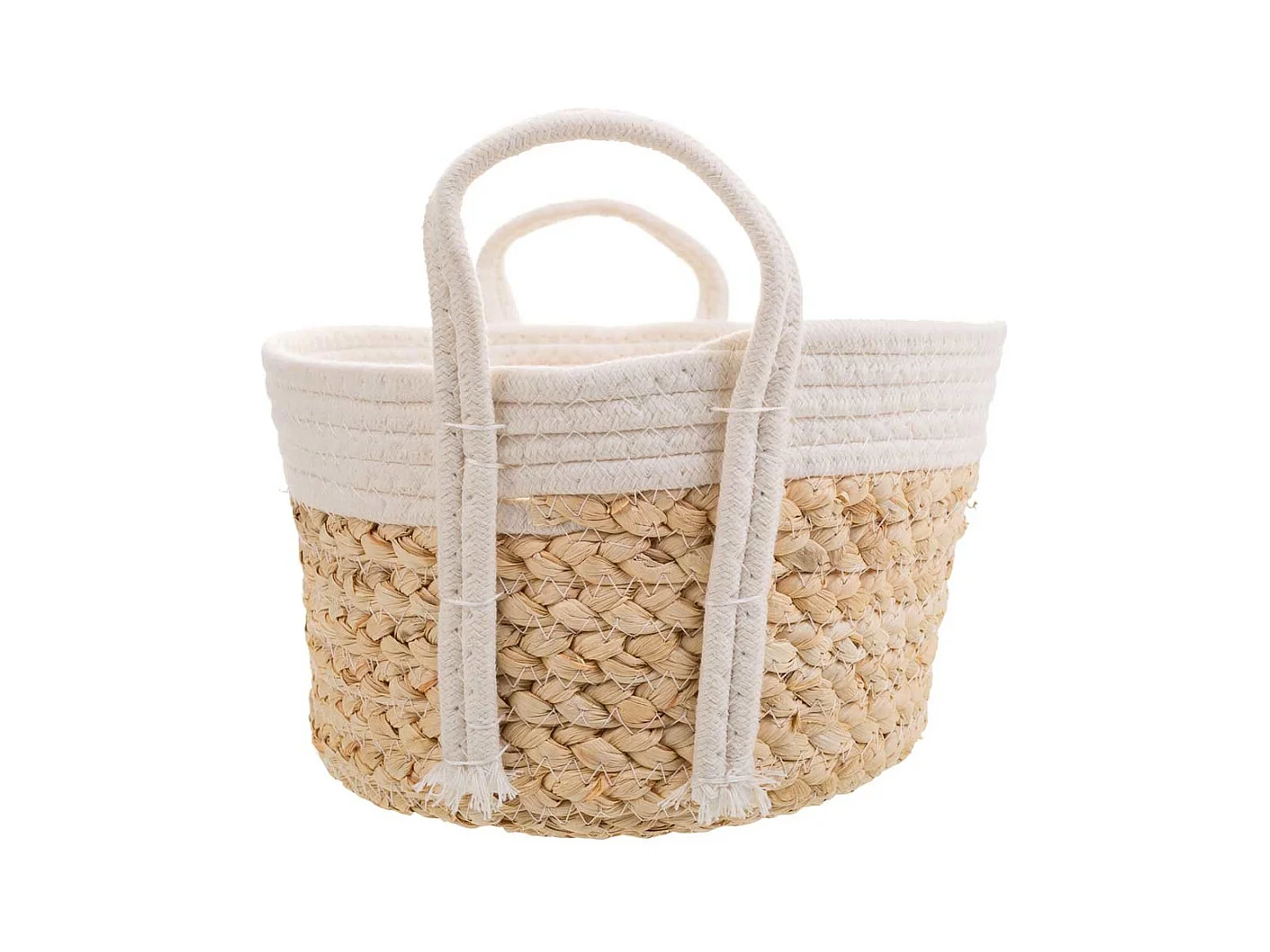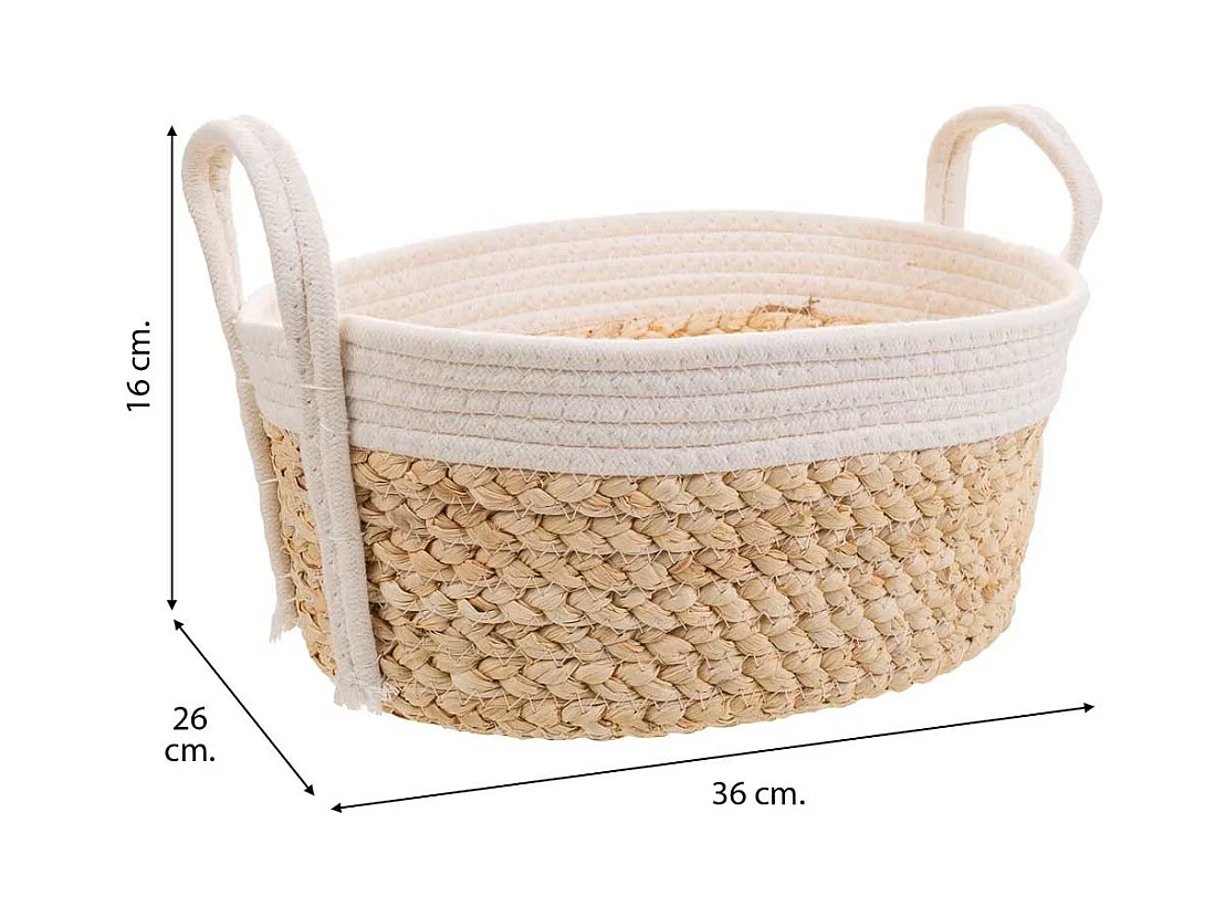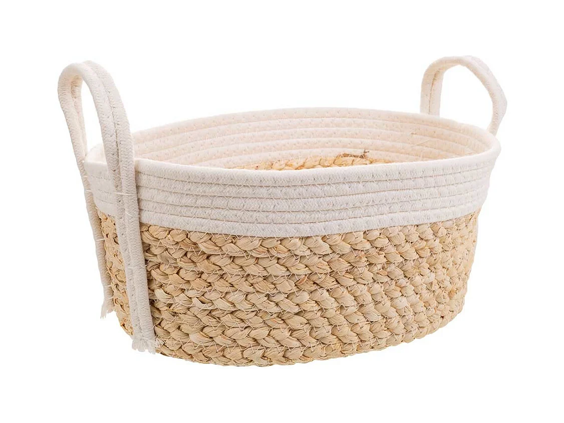 Cesto de corda trançada branca 36x26x16
