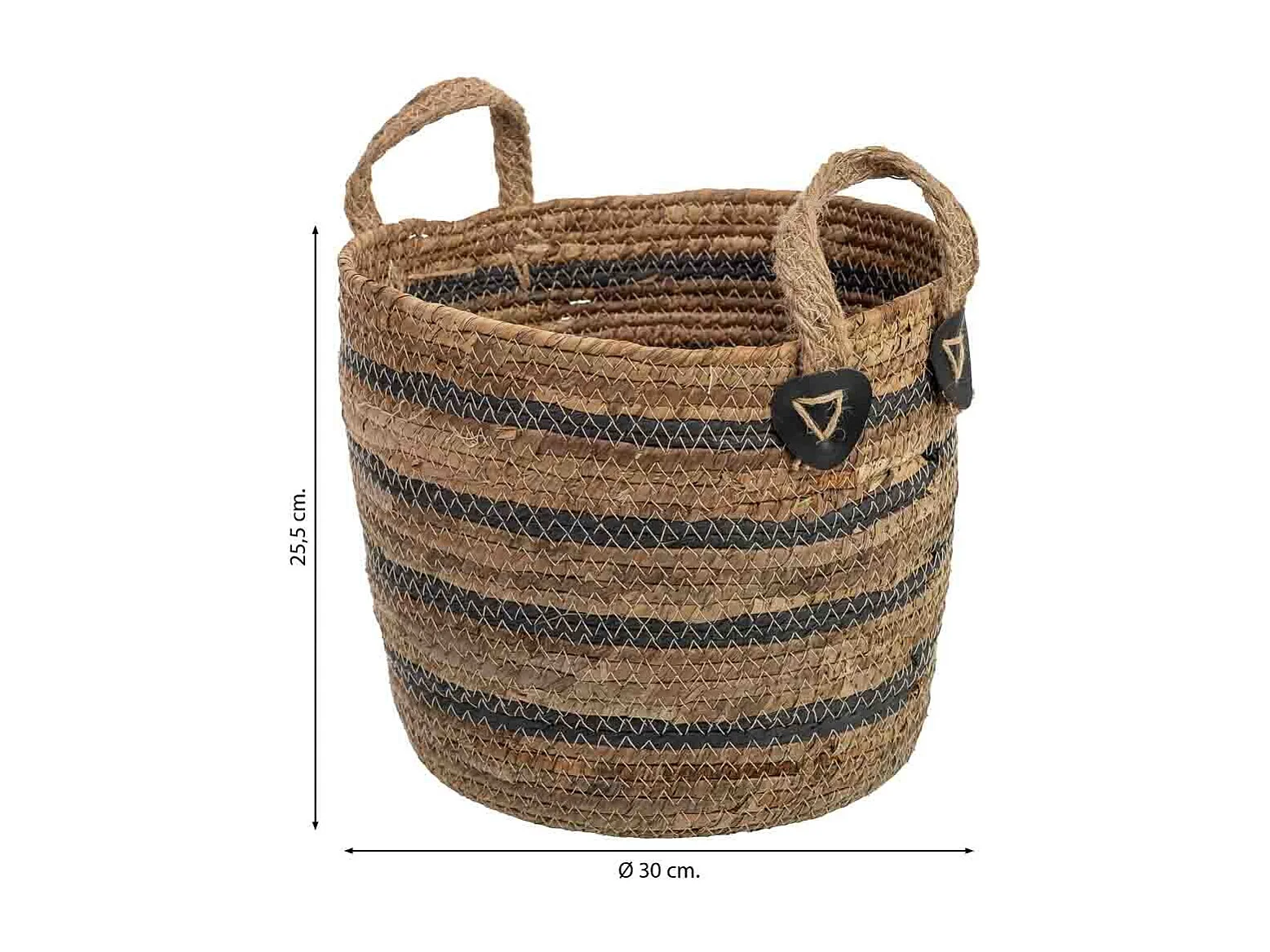 Cesto de fibra de folha de bananeira e corda torcida de papel D30x25,5