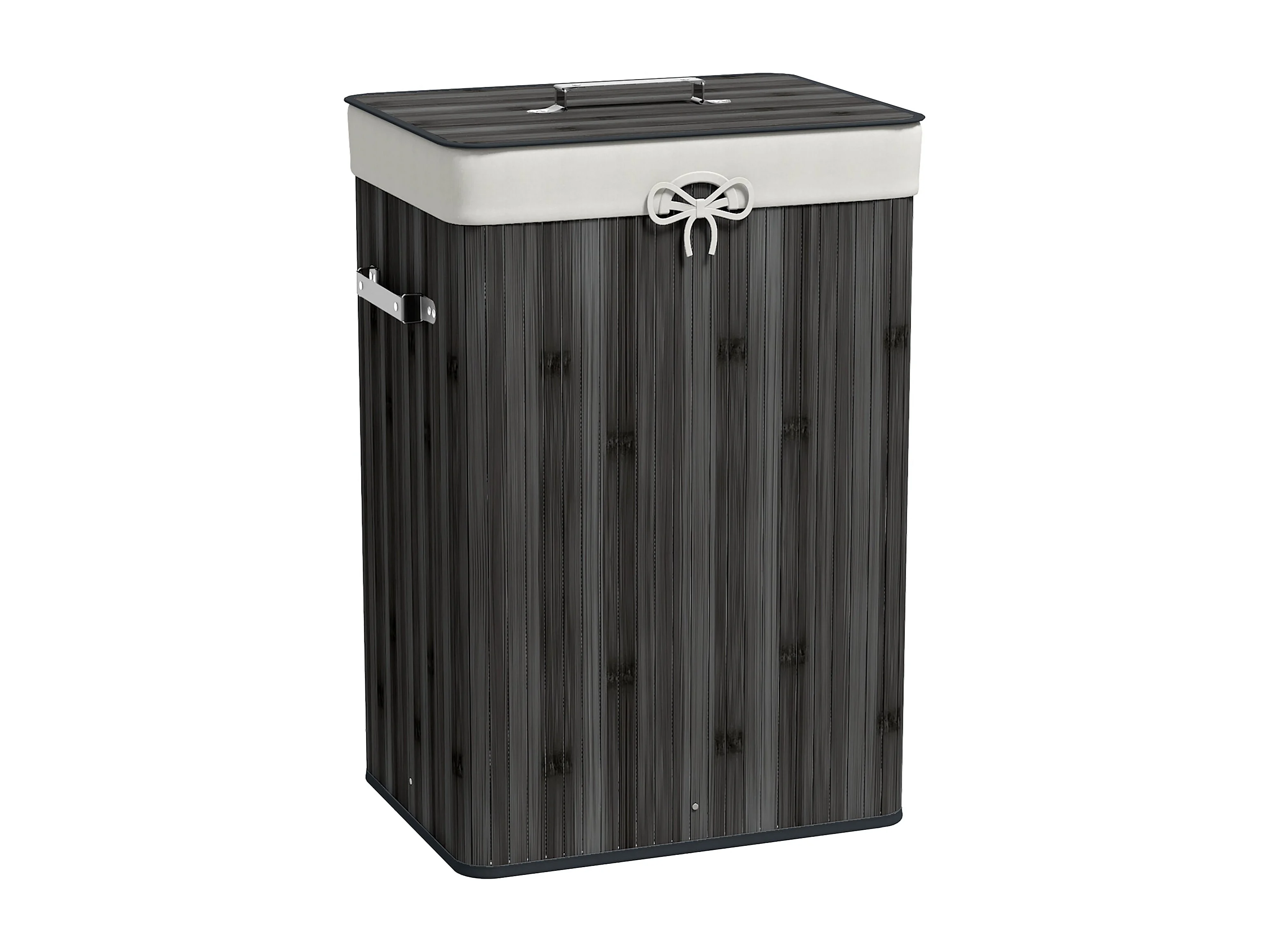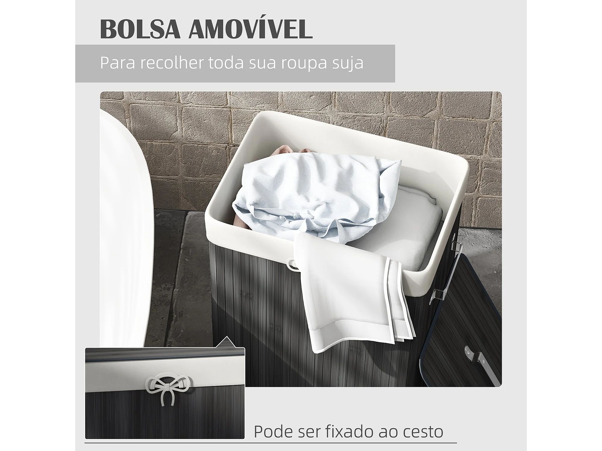 Cesto de Roupa Dobrável HOMCOM em Bambu com Tampa e Bolsa Removível - Cinza Escuro 40x30x60 cm