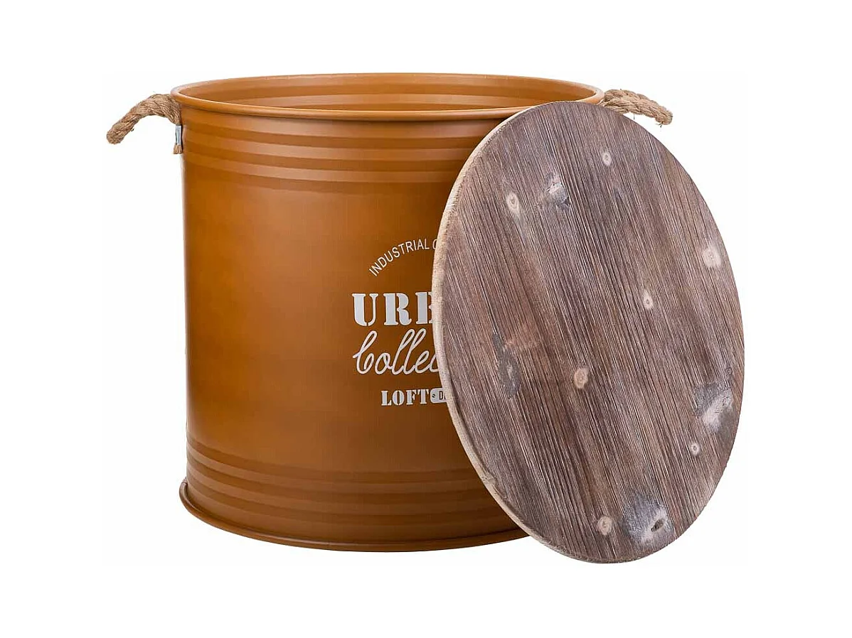 Cesto de roupa suja de metal estampado marrom 50x50