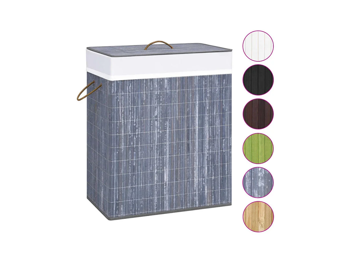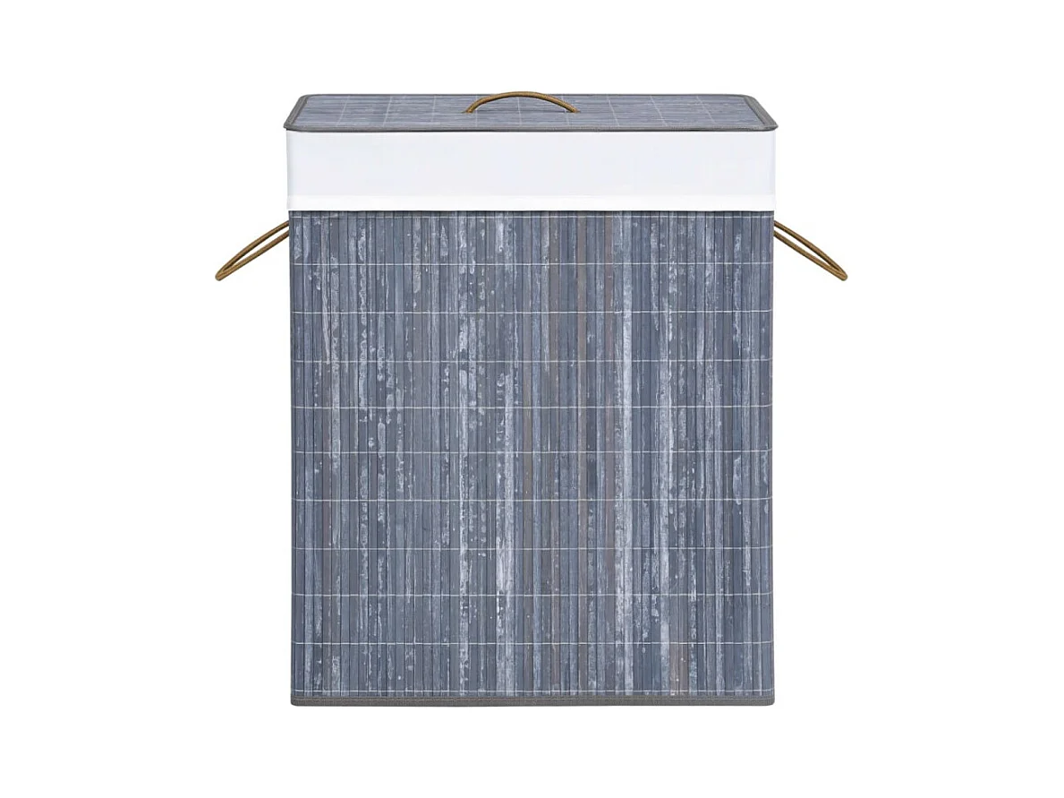 Cesto de Roupa Suja em Bambu Cinza com 2 Seções e 100 Litros