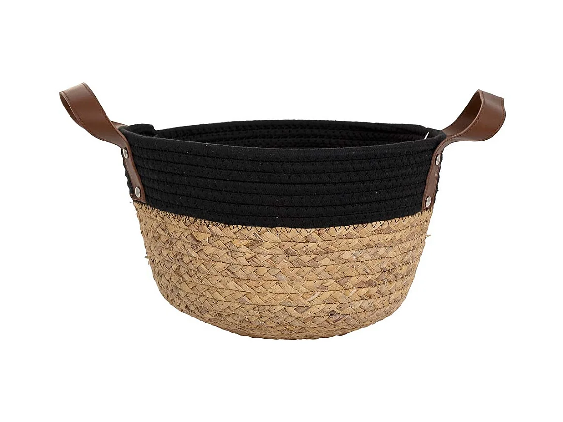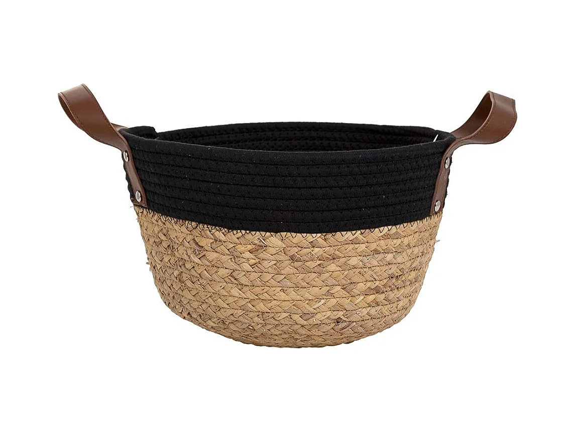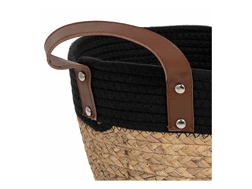Conjunto de 3 cestas Brais de fibra natural com alças, branco/natural.