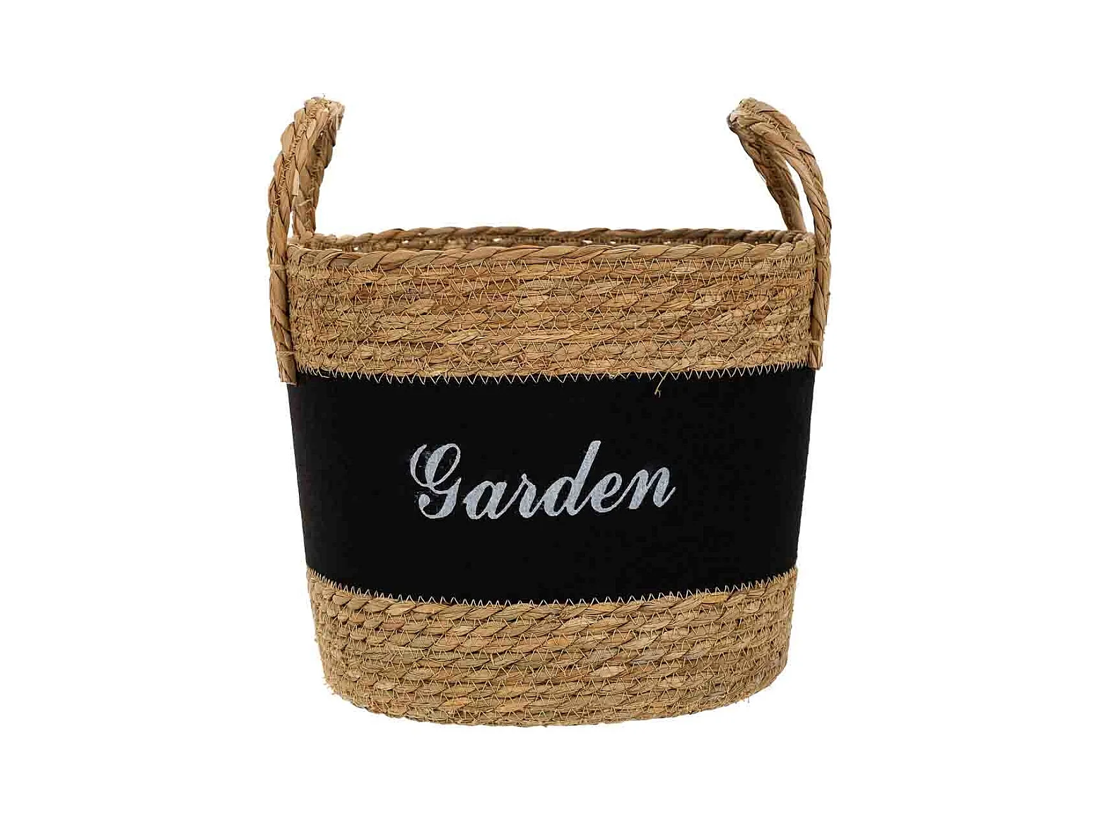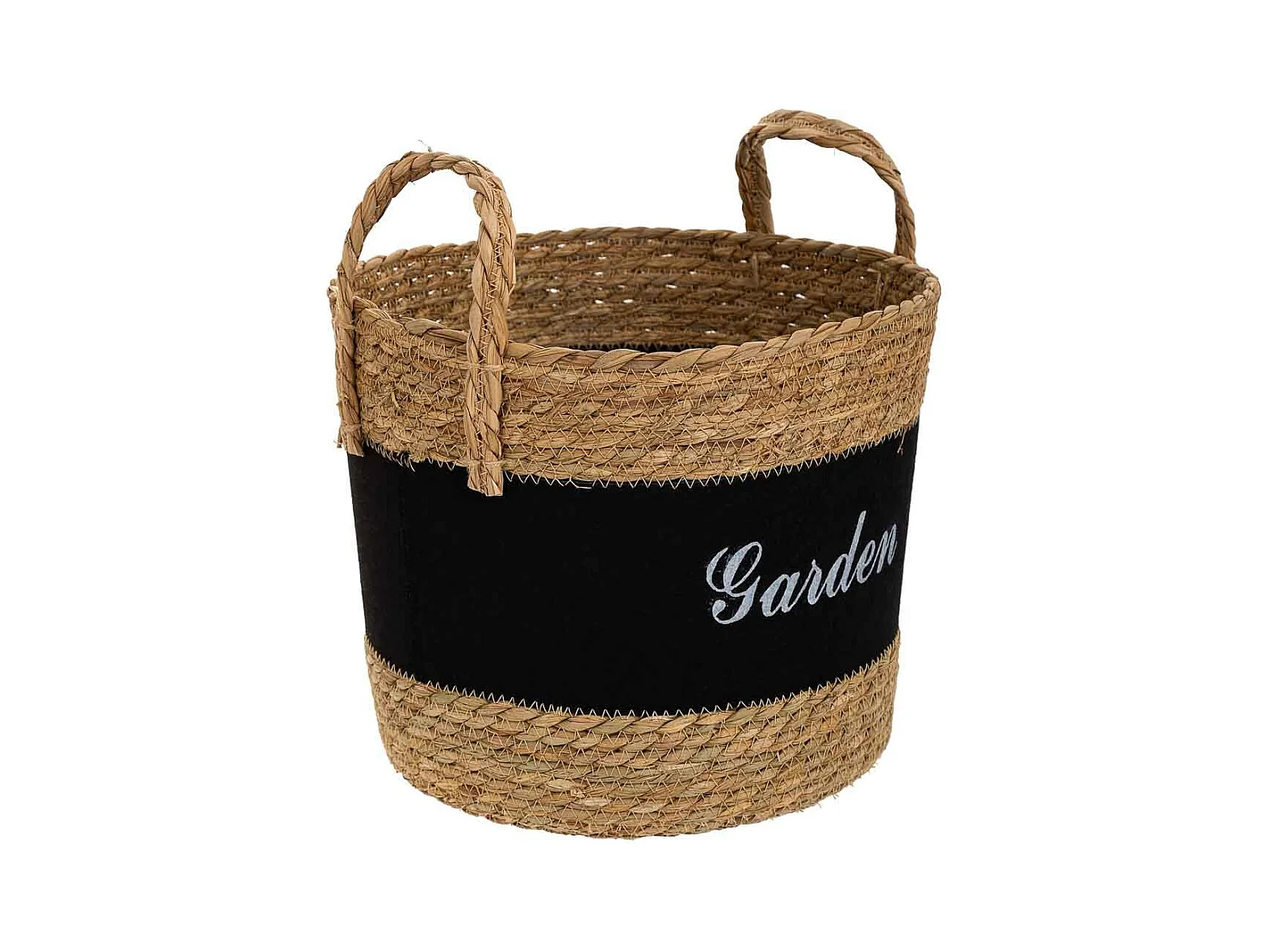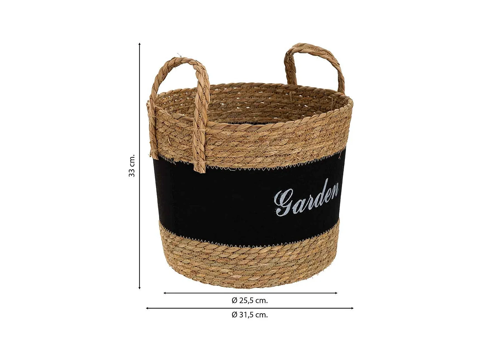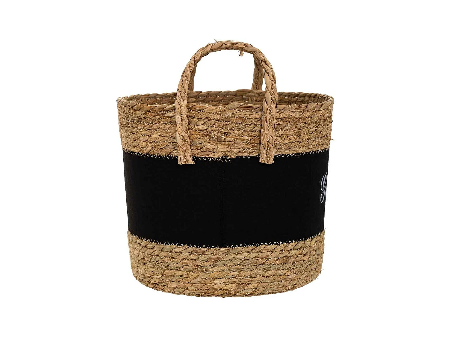 Cesto em fibra natural e algodão preto d31,5x25,5/33