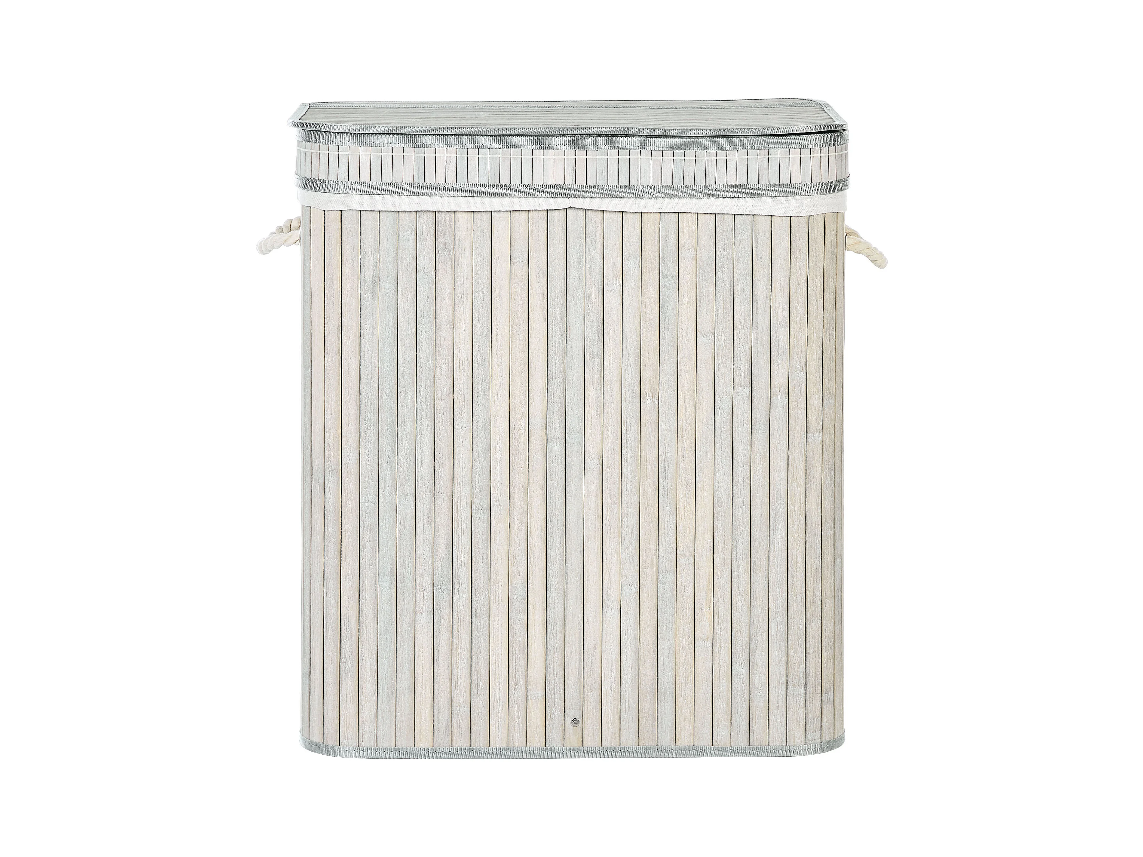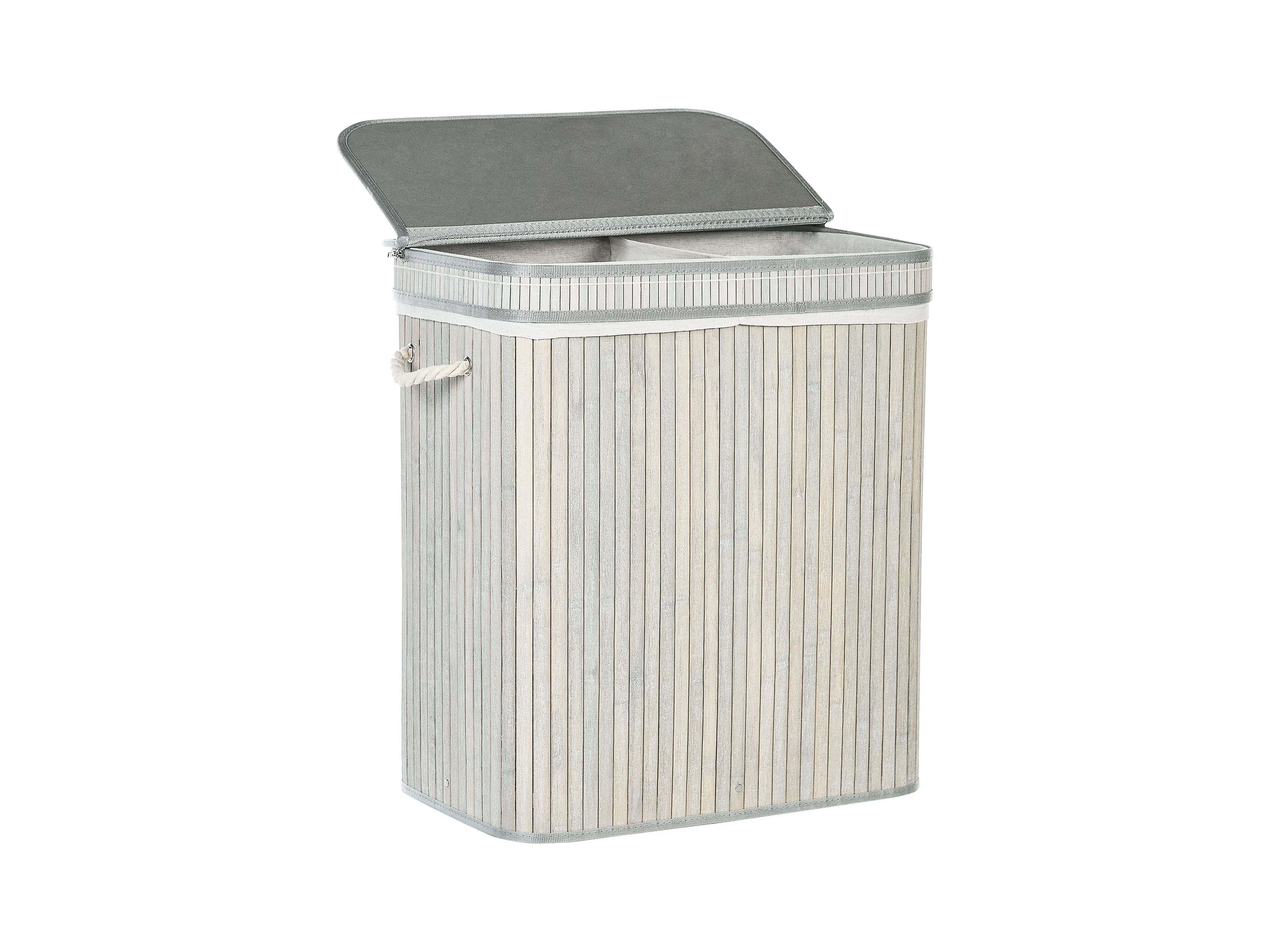 Cesto de Roupa Suja em Bambu Cinza com 2 Seções e 100 Litros