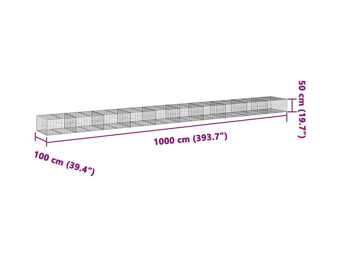 Cesto gabião com cobertura 600x100x50 cm ferro galvanizado