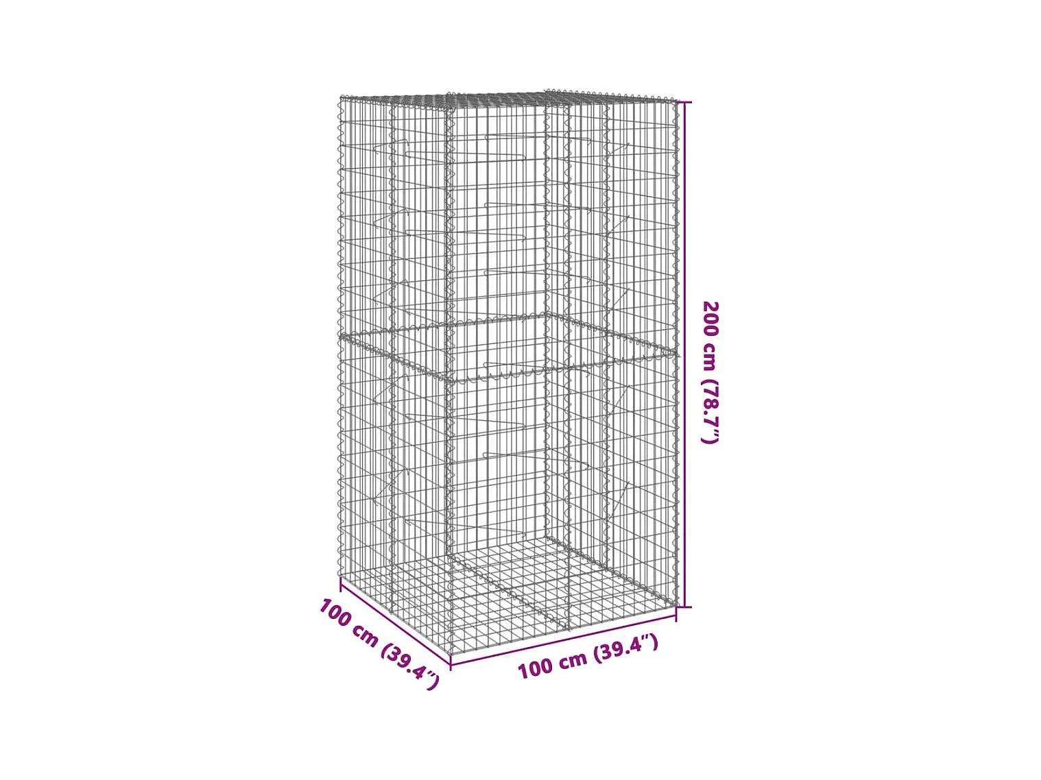 Cesto gabião com cobertura 100x100x200 cm ferro galvanizado