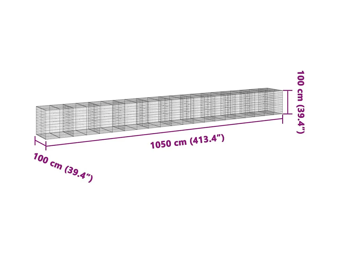 Cesto gabião com cobertura 1050x100x100 cm ferro galvanizado