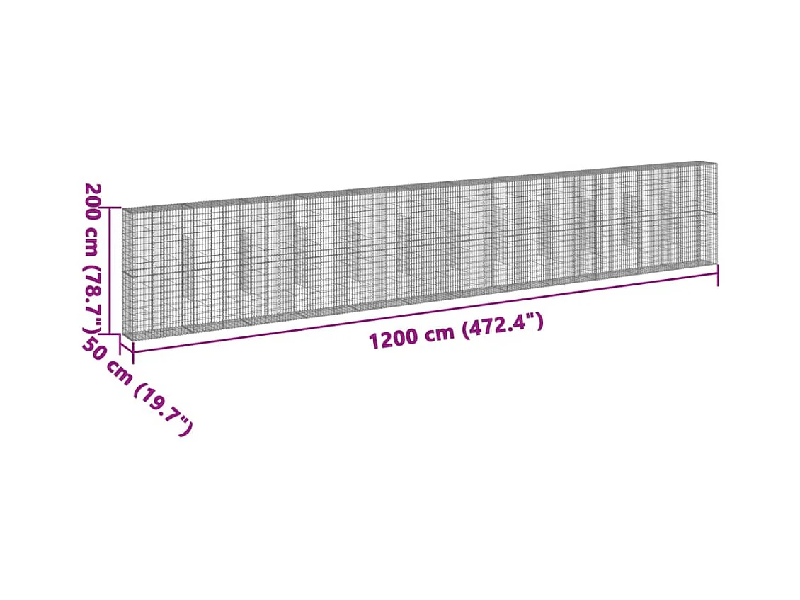 Cesto gabião com cobertura 1200x50x200 cm ferro galvanizado