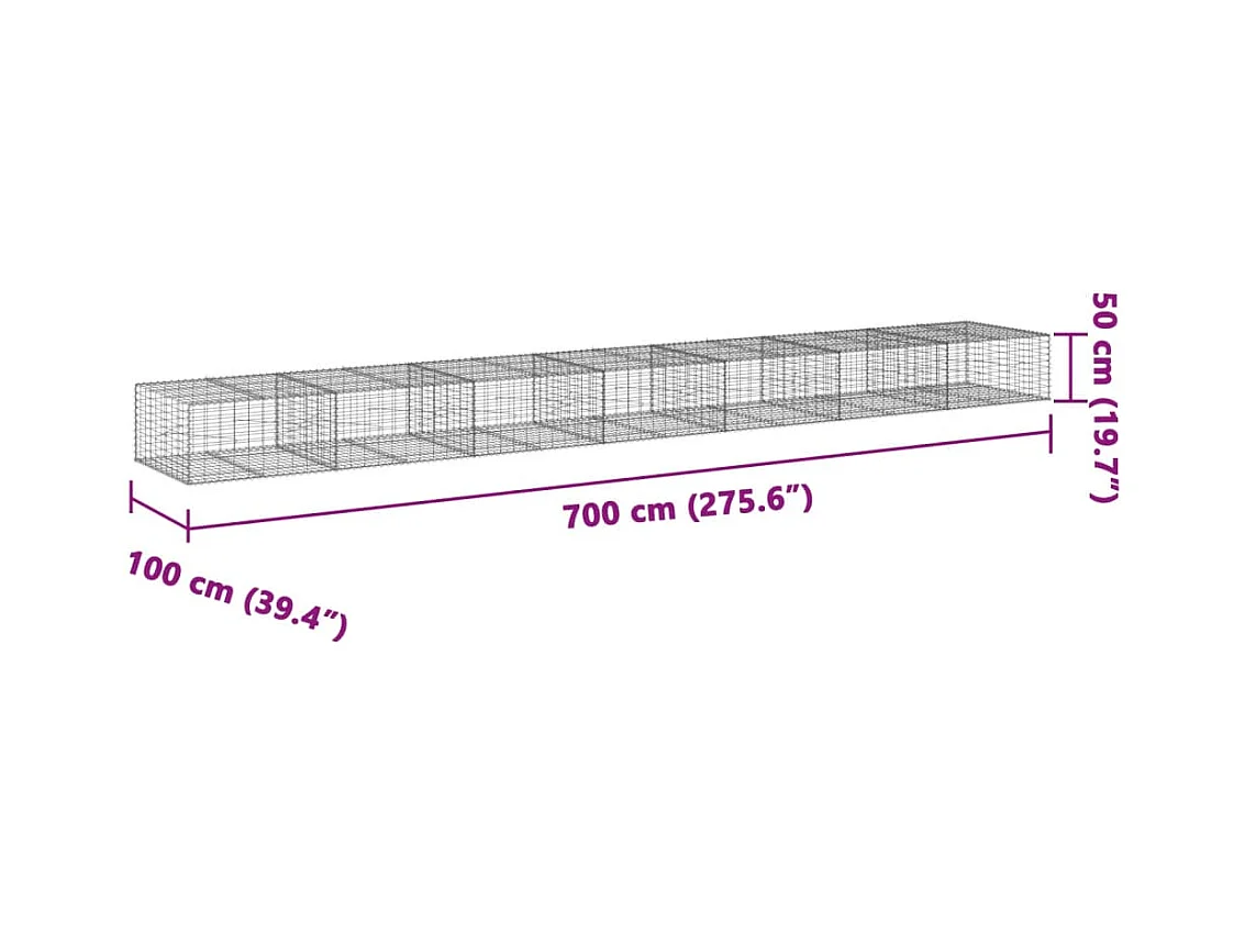 Cesto gabião com cobertura 700x100x50 cm ferro galvanizado