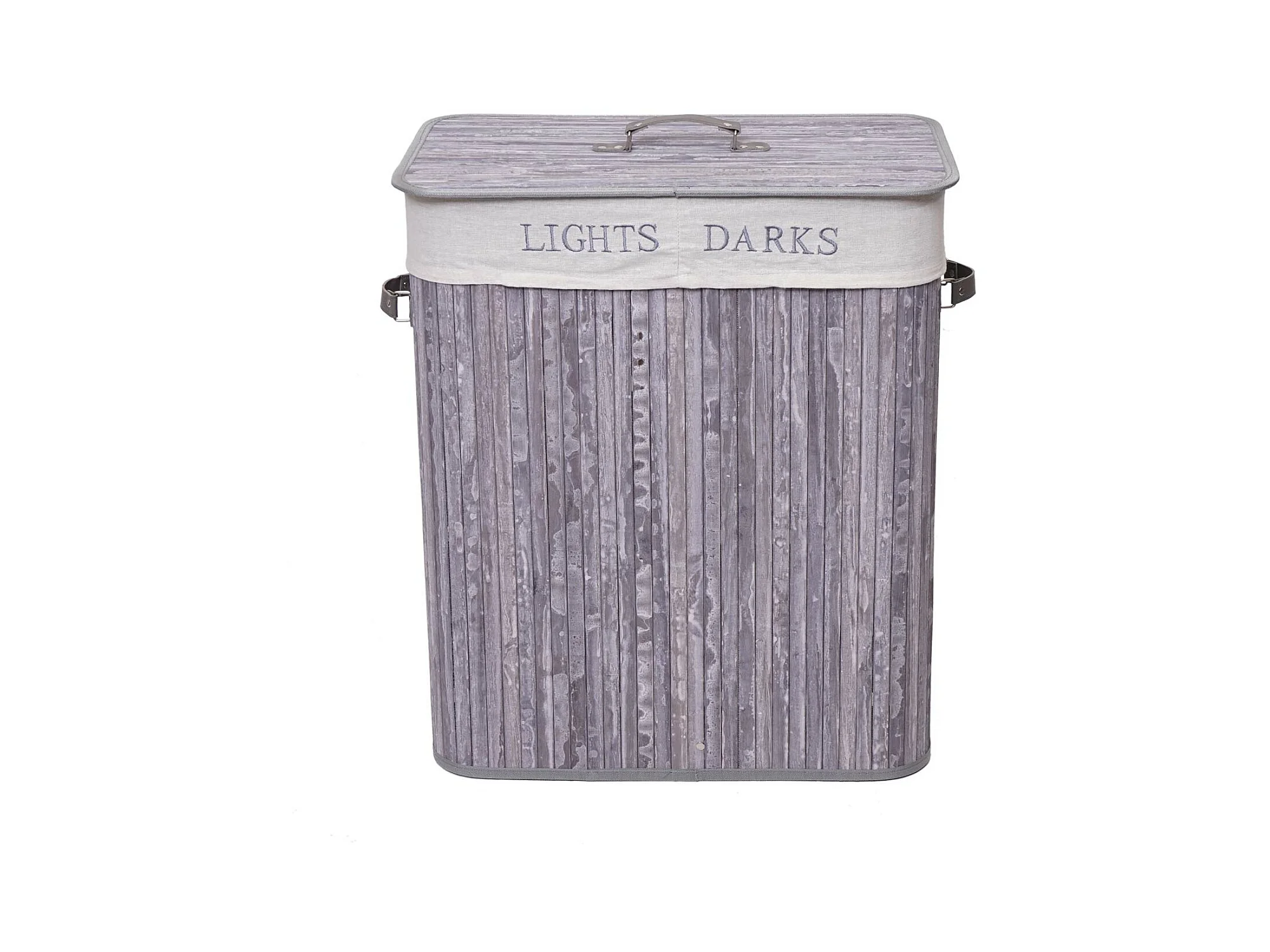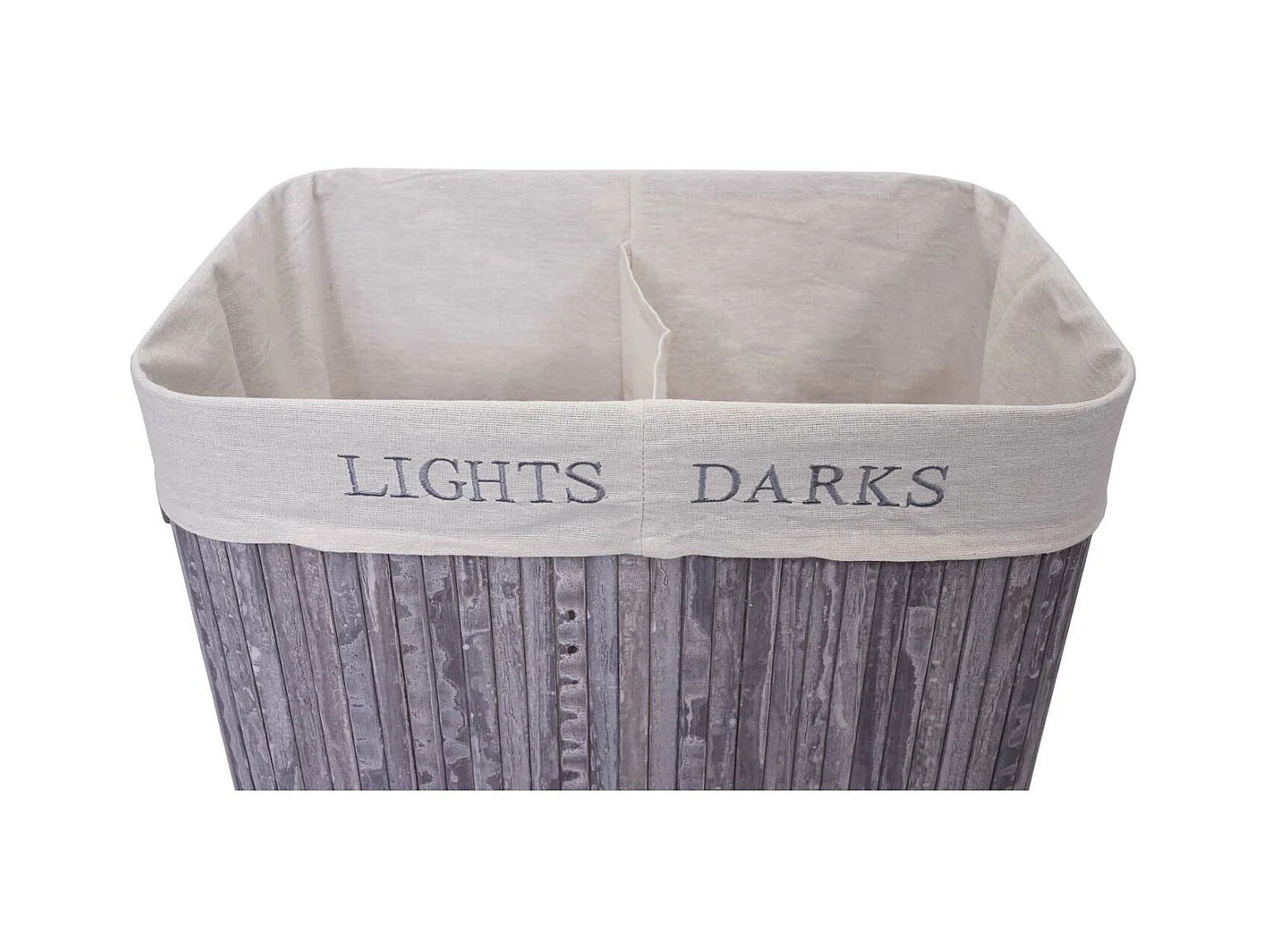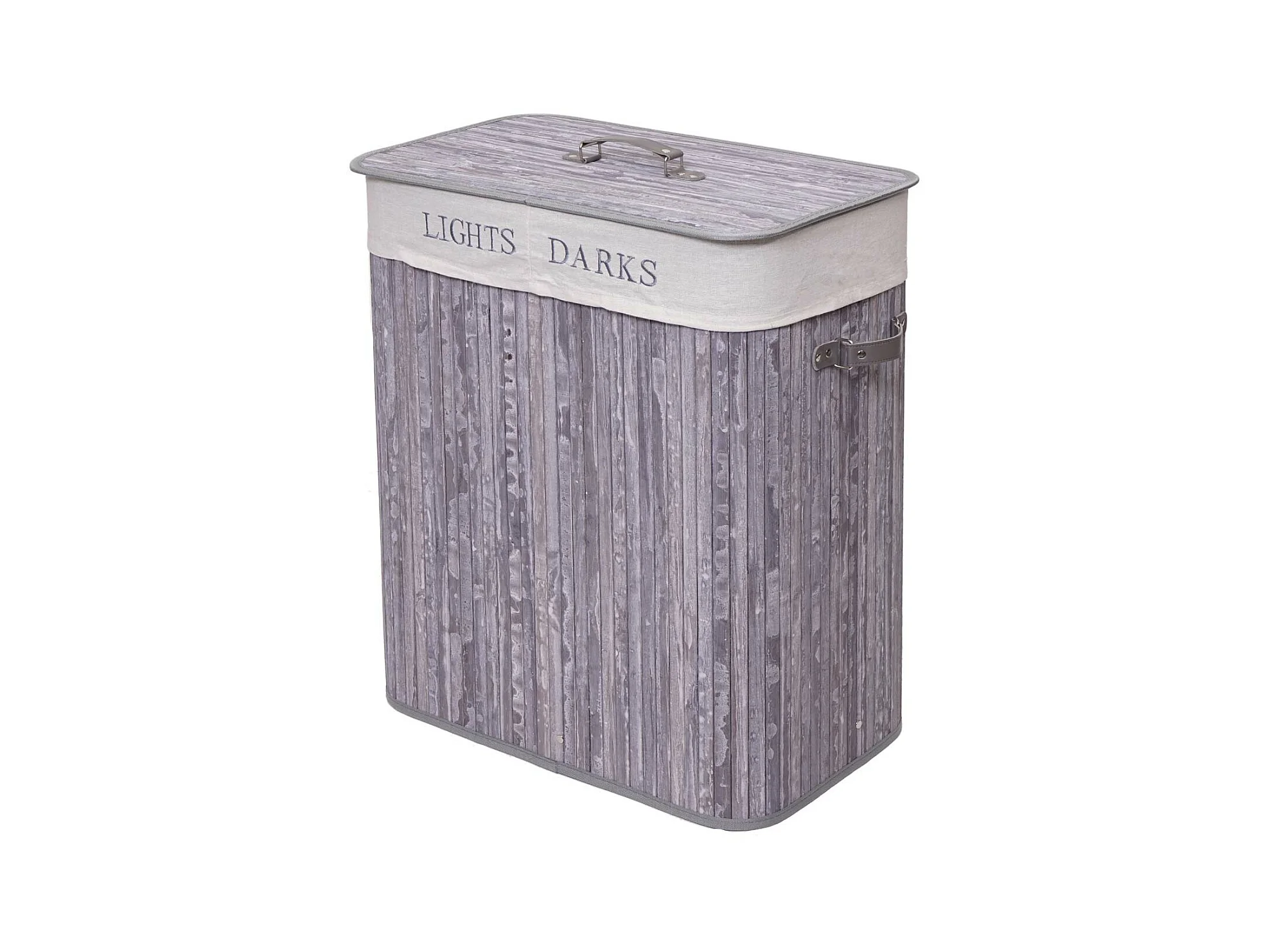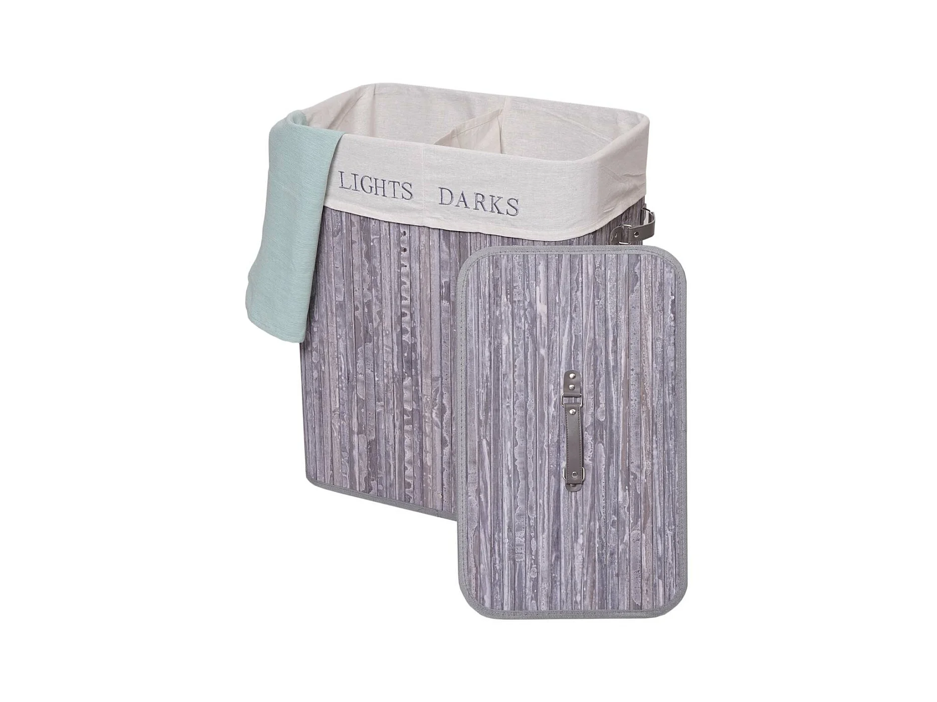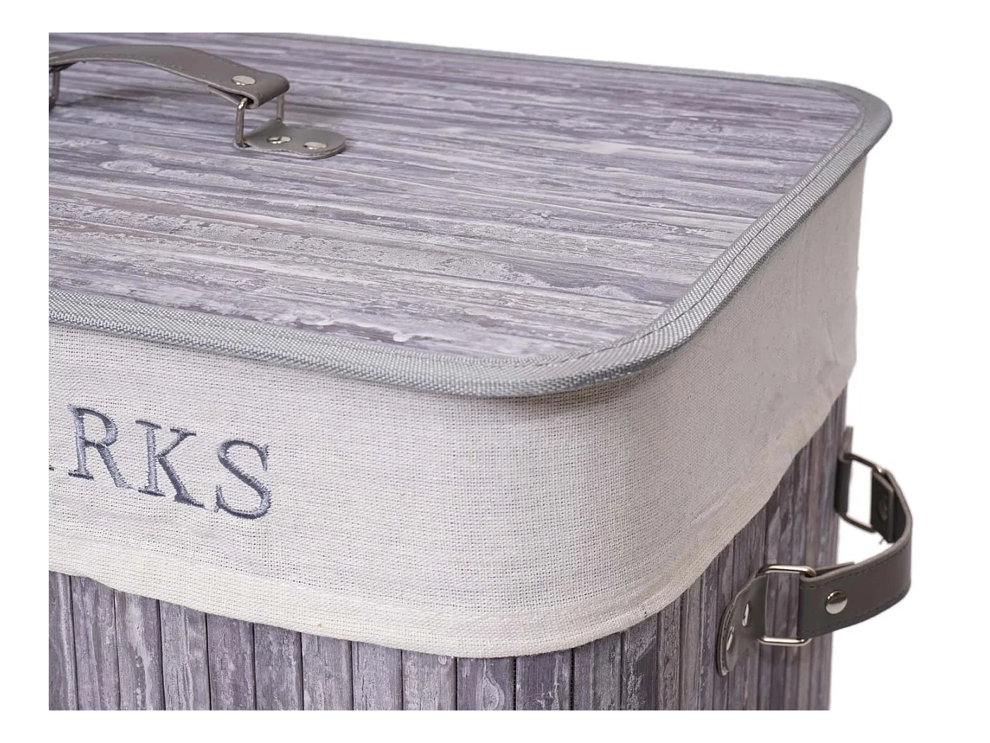 150L Cesta de linho dobrável, em tecido cinza, com 2 capas e 2 bolsa interior destacável, 57x37x70cm