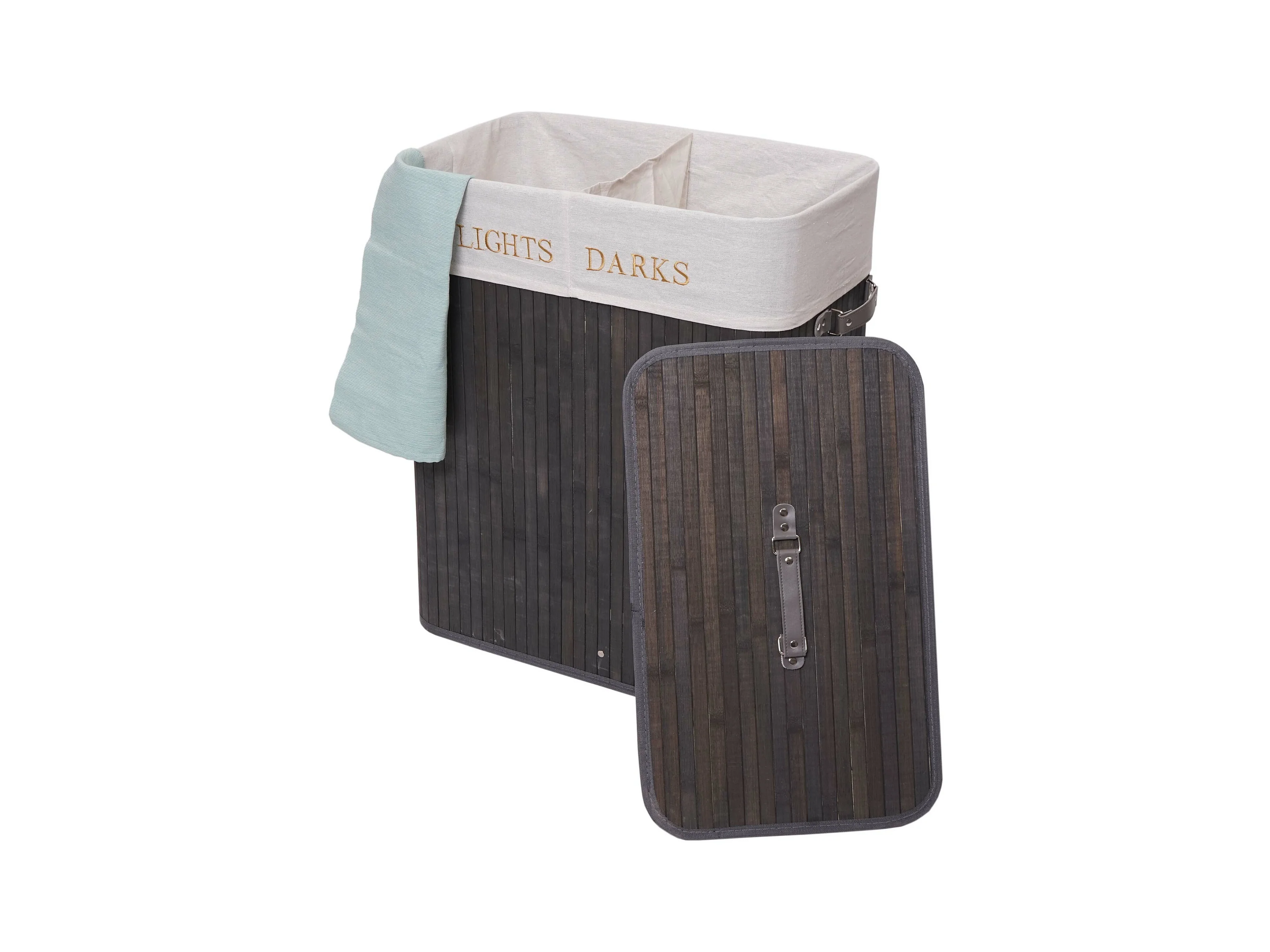 150L Cesta de linho dobrável, em tecido cinza, com 2 capas e 2 bolsa interior destacável, 57x37x70cm