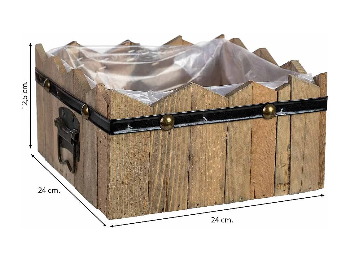 Cesto quadrado em madeira azul 24x24x11/12,5h cm