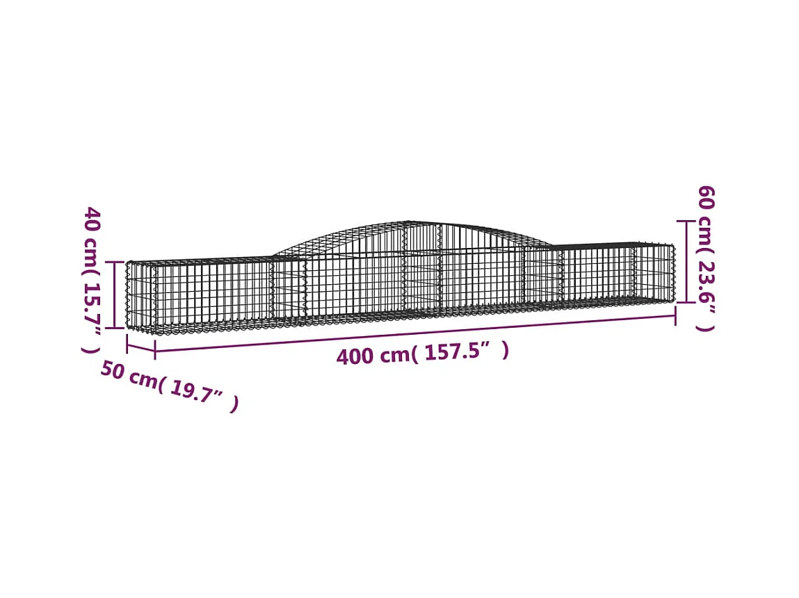 Cestos gabião arqueados 25pcs 400x50x40/60 cm ferro galvanizado