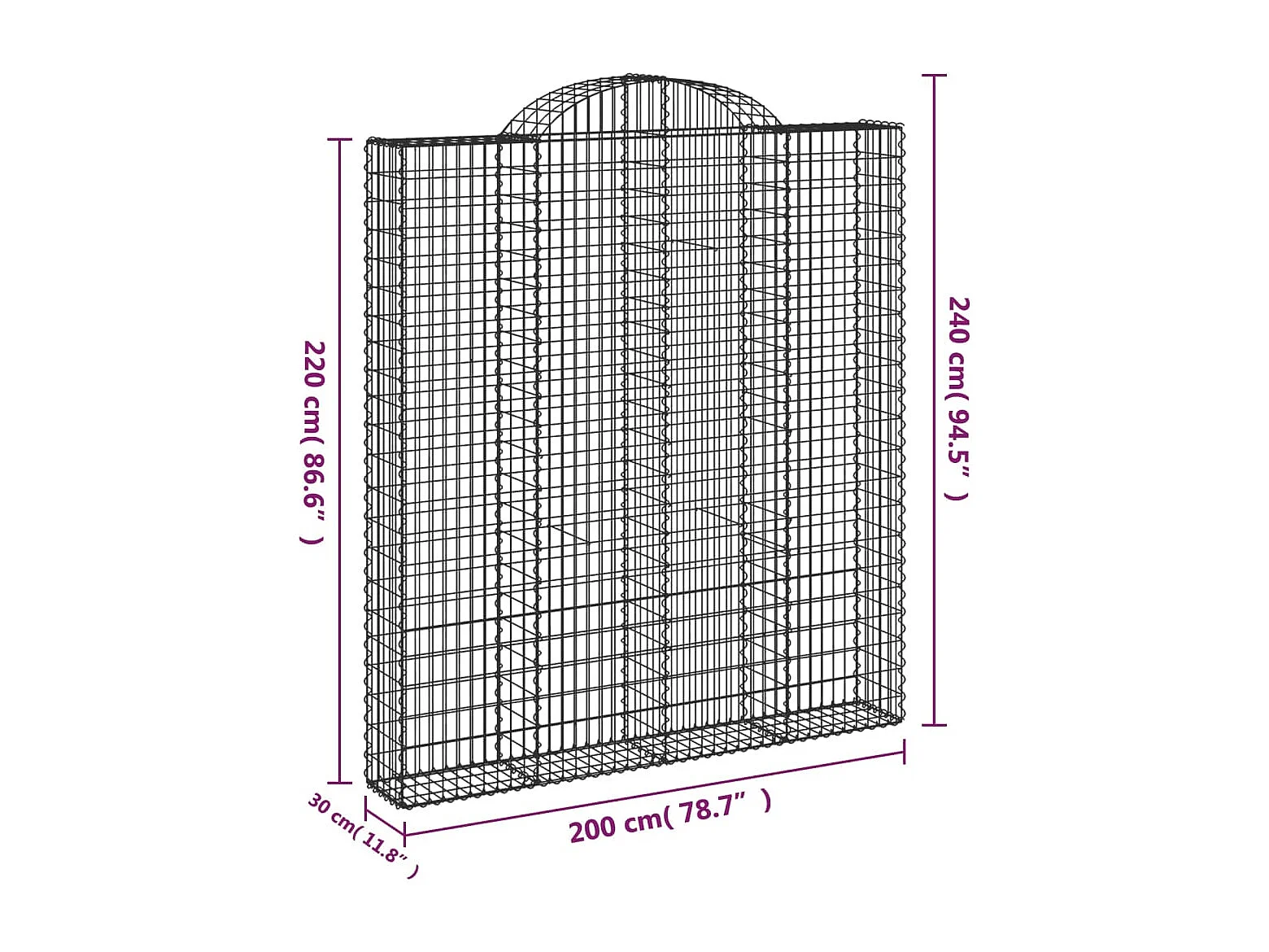 Cestos gabião arqueados 9pcs 200x30x220/240cm ferro galvanizado