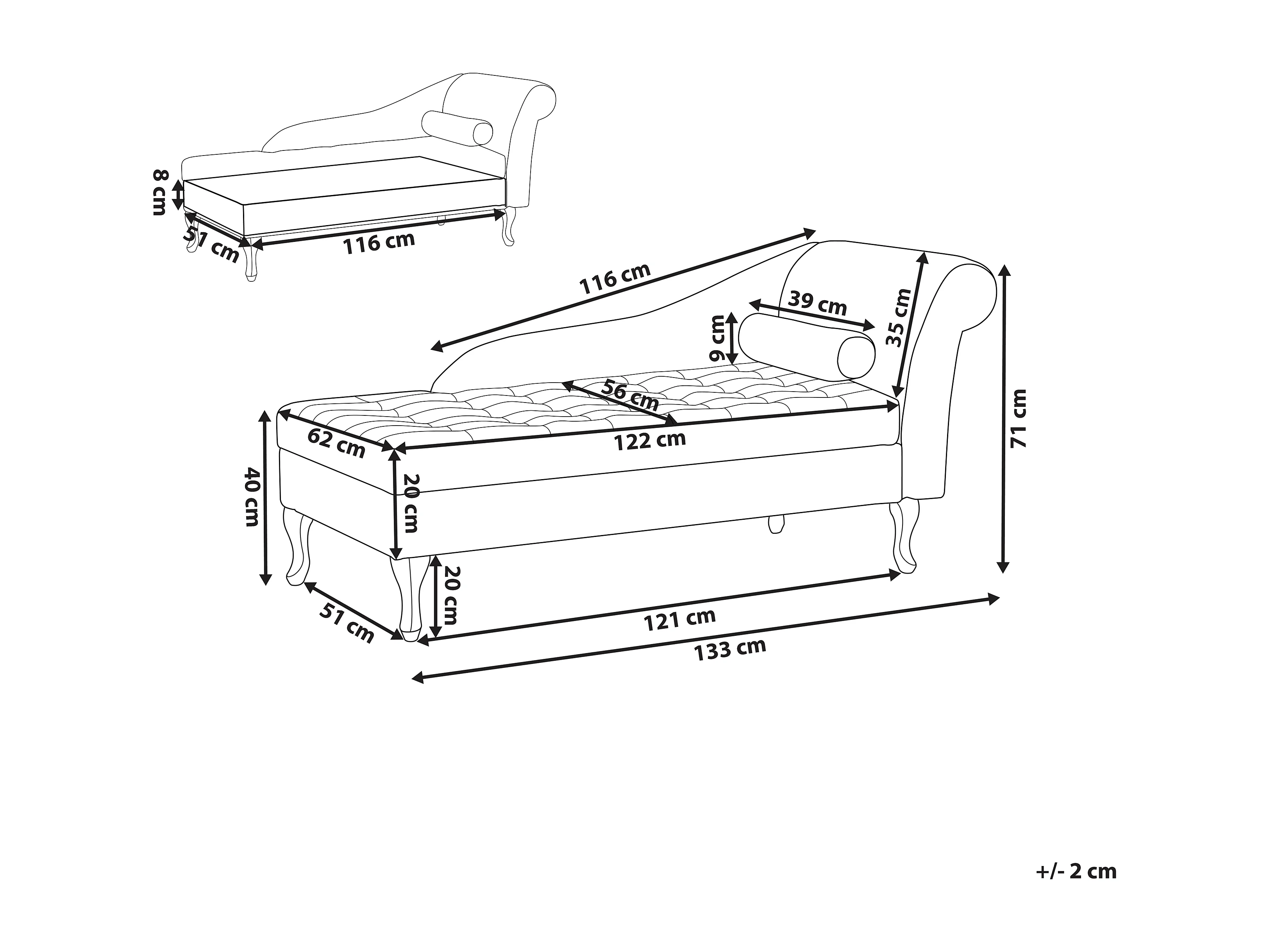 Chaise longue à direita PESSAC Veludo Cinzento claro com arrumação