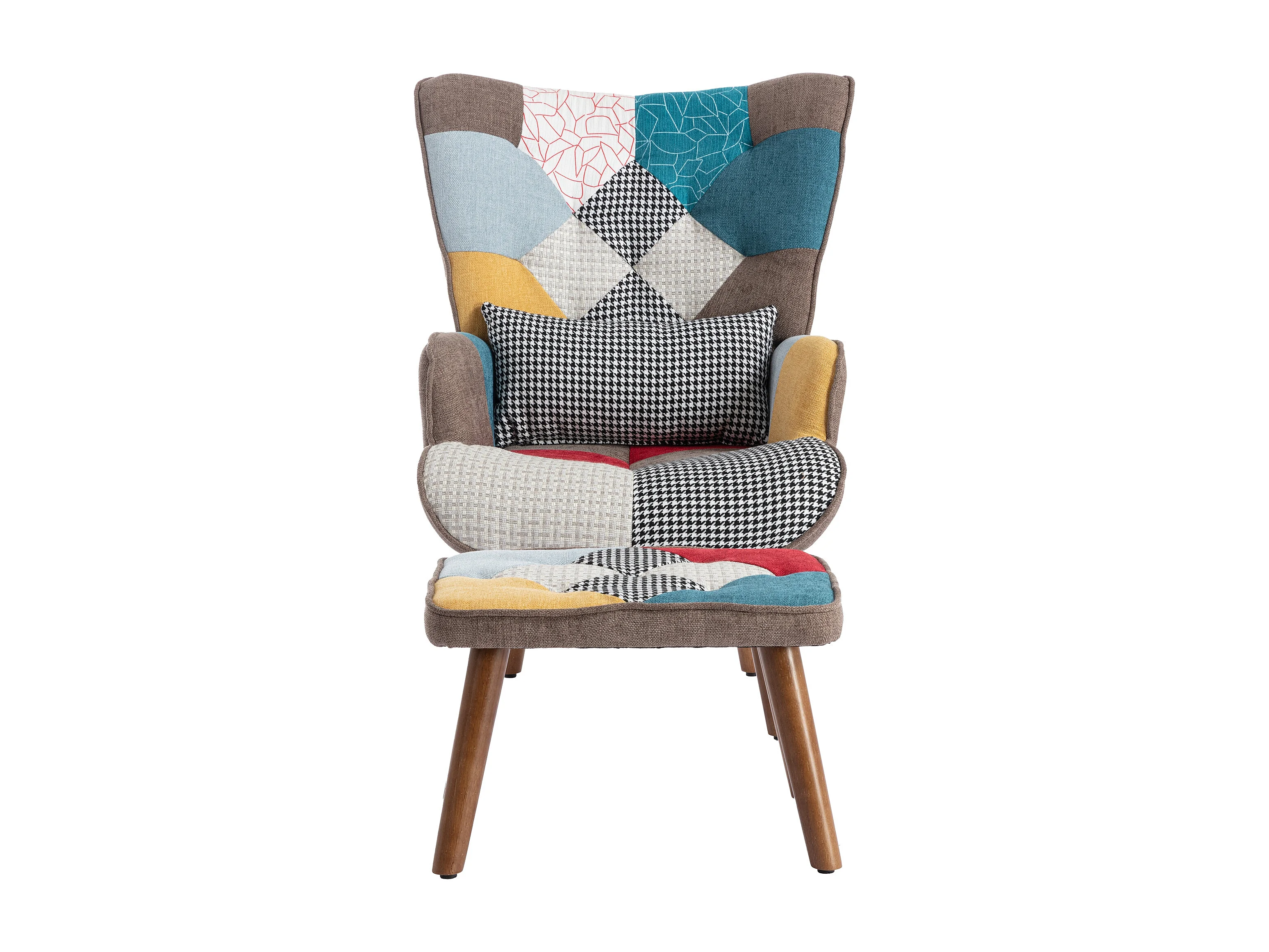 Chaise longue com apoio para os pés - 69 x 51 x 95,5 cm - com encosto e almofada - Multicolorido