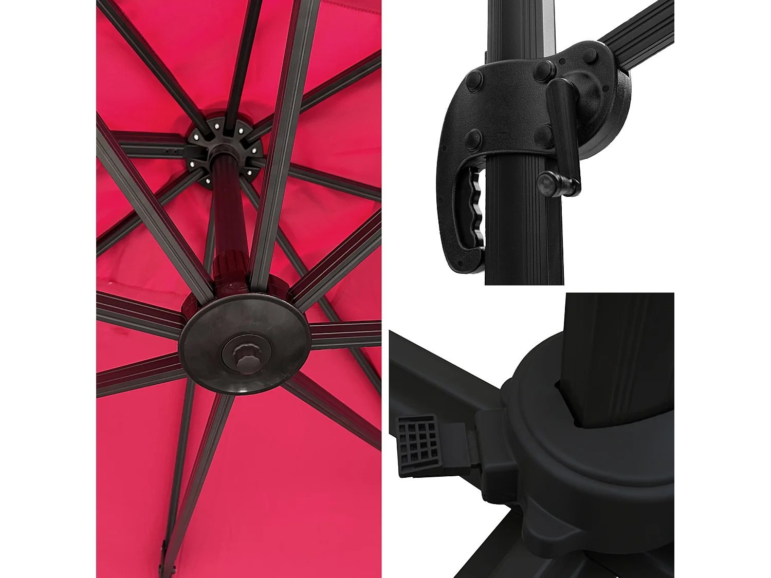 Guarda-sol de cantiléver basculante Terni, rosa com suporte
