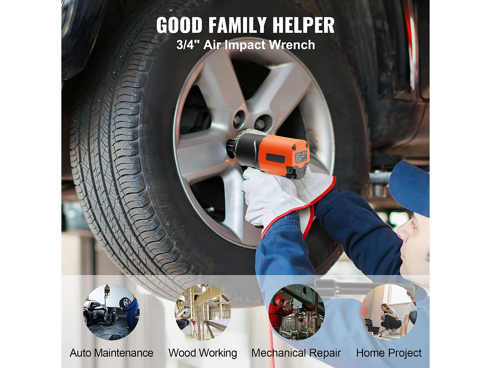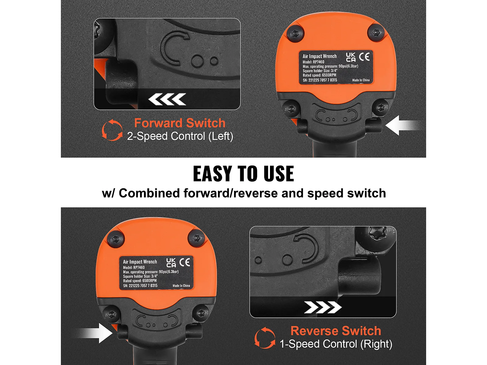 Chave de Impacto Pneumática SucceBuy, Encaixe Quadrado de 3/4", Binário de 1.870 Ft-Lbs, 90-120 Psi