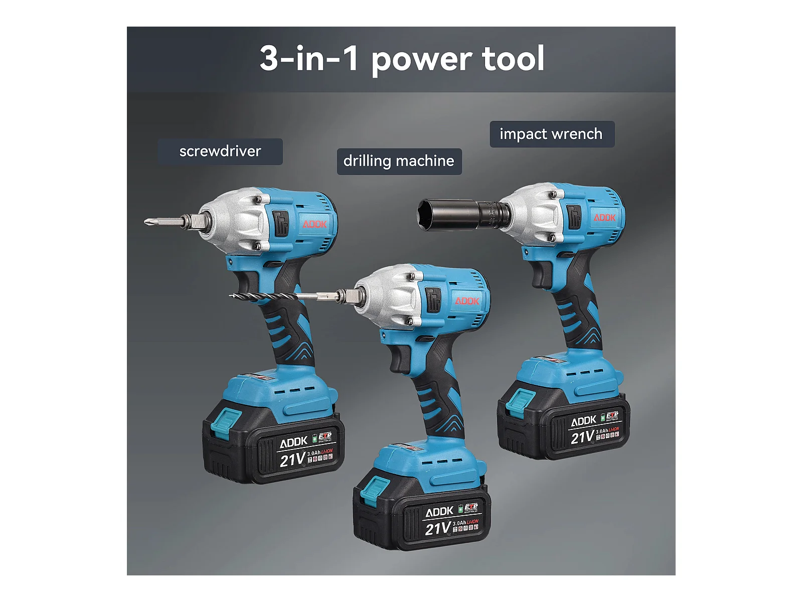 Chave de Impacto Sem Fio 21V 3,0Ah - Motor Sem Escovas - Caixa com 25 Acessórios - Azul