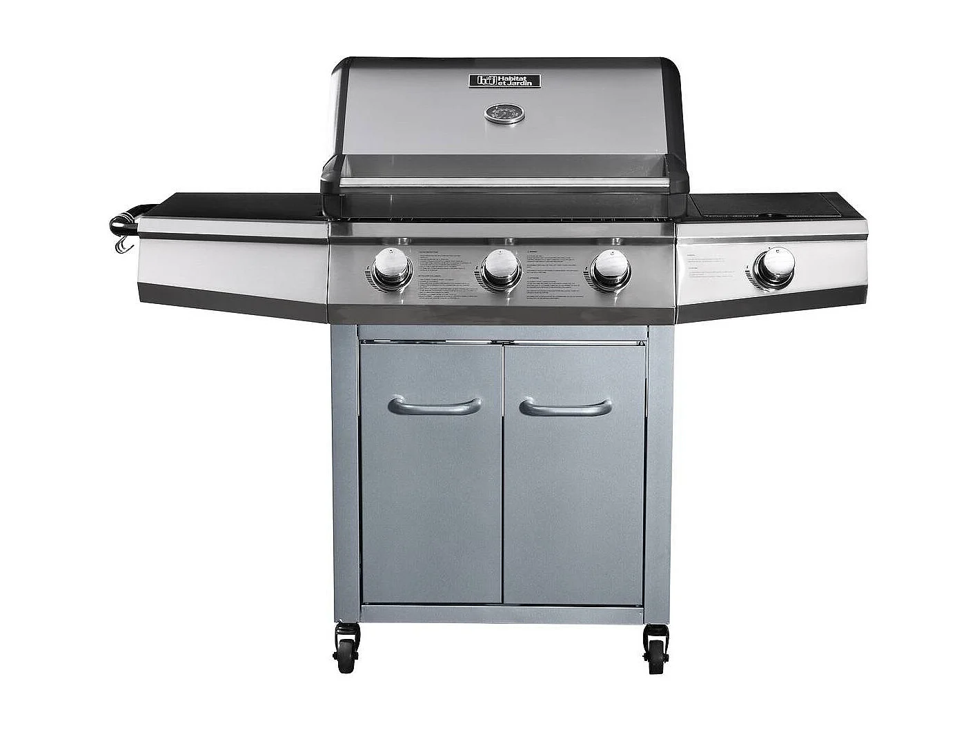Churrasqueira a gás com LED "Bingo 4" - 4 queimadores incluindo 1 lateral - 14kW + Capa de protecção - Prata