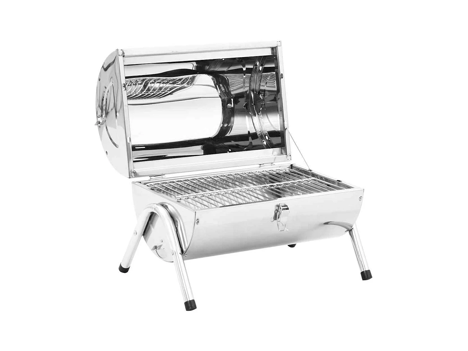 Churrasqueira com tampa portátil aço inoxidável grelha dupla