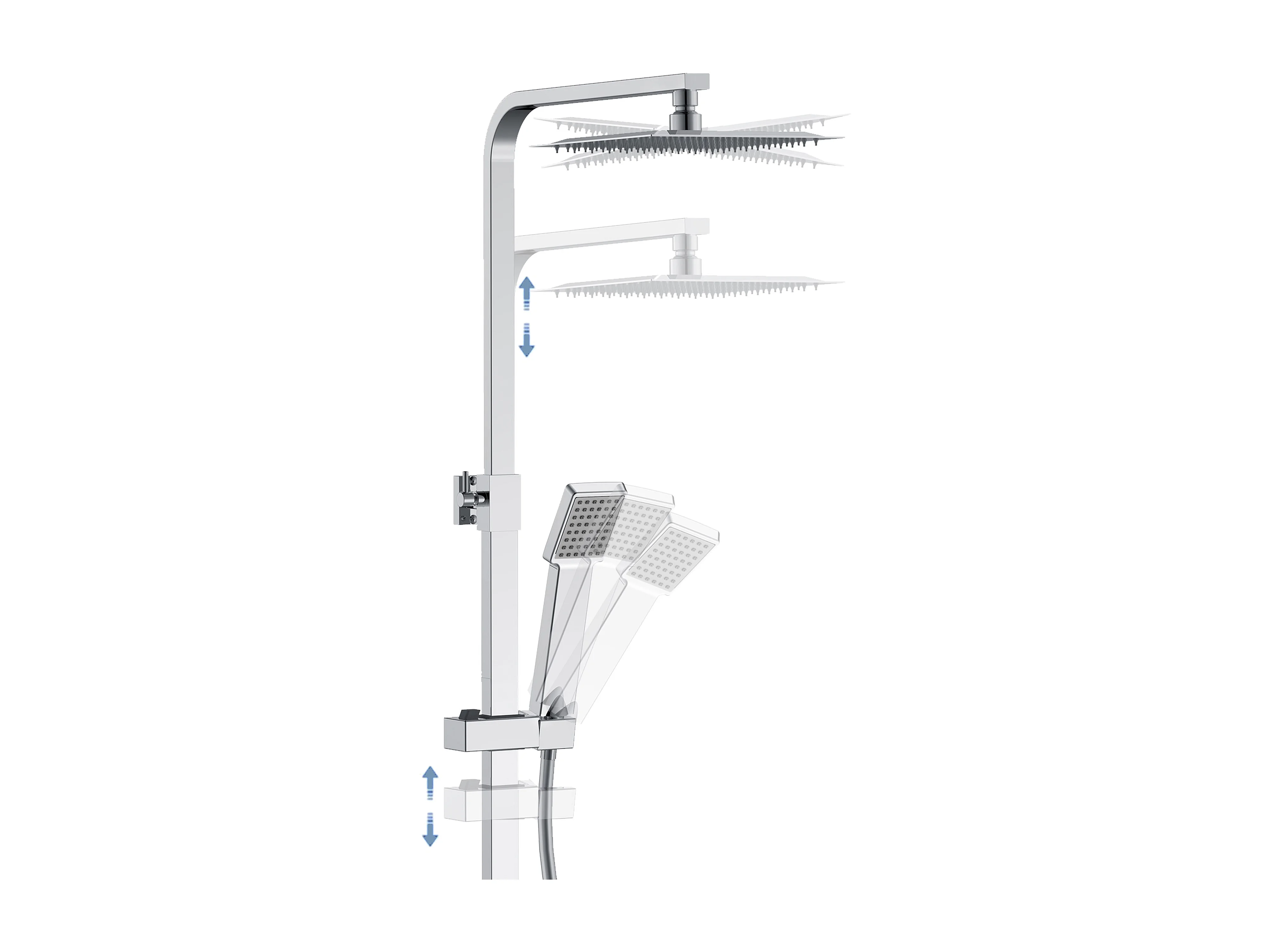 Coluna de chuveiro termostático quadrado Aica 764-1184mm para banheira
