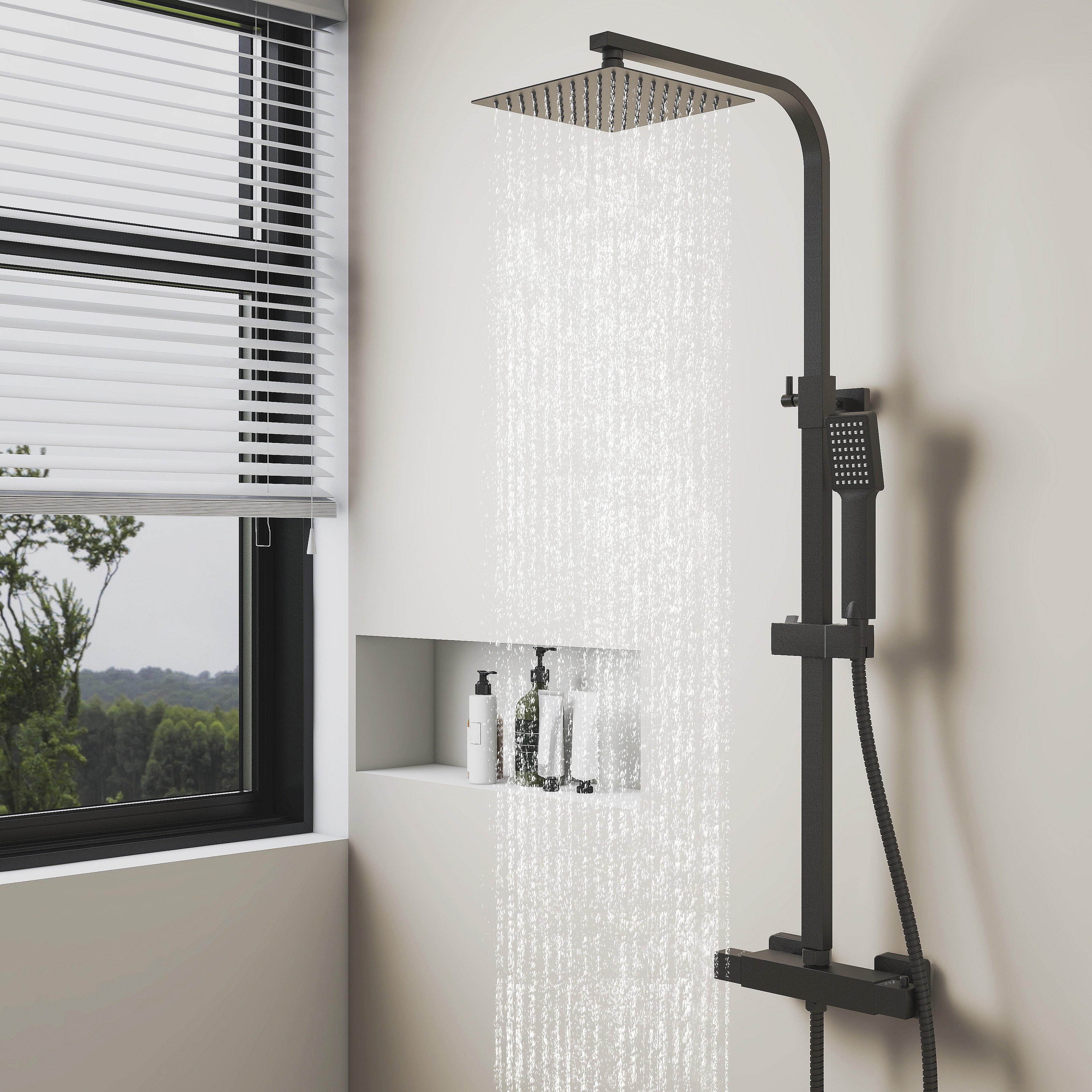 AICA conjuntos de chuveiro termostático preto fosco com chuveiro quadrado, chuveiro de mão e coluna ajustável x2
