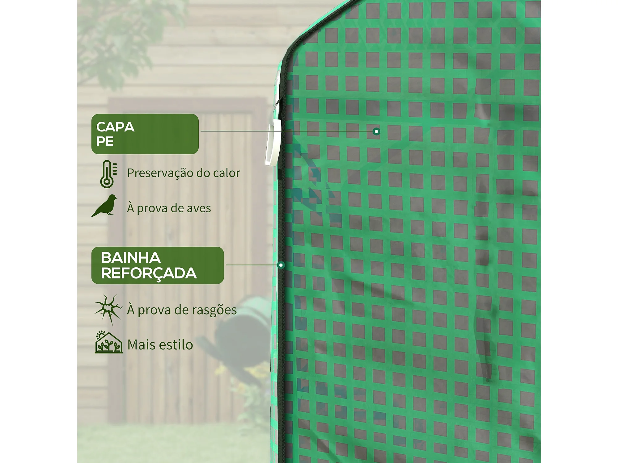 Cobertura de Substituição para Estufa Verde com Janela e Porta - 140x143x190 cm