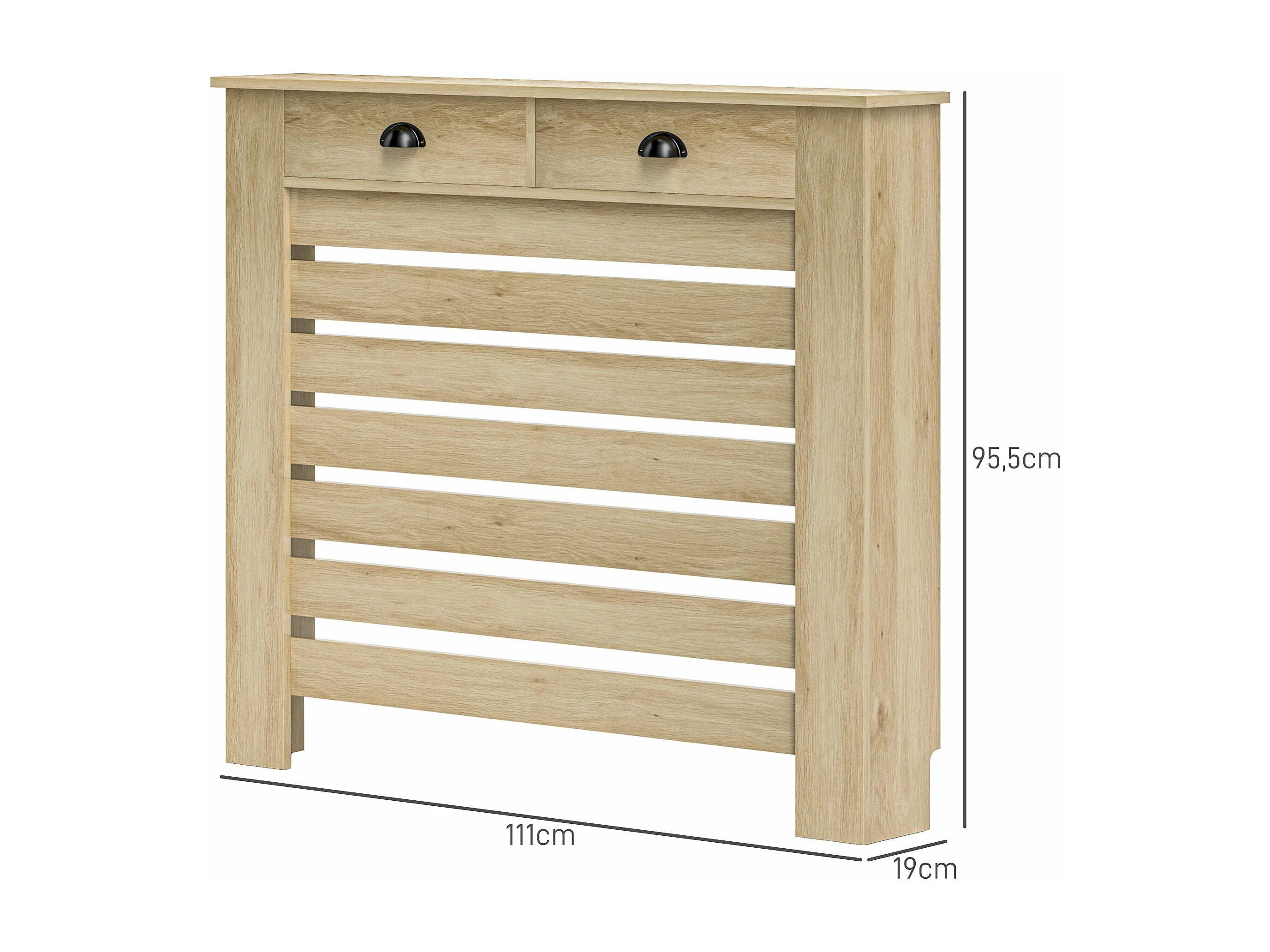 Cobertura Elegante para Radiador com Gavetas em MDF para Sala, Dormitório e Corredor - 111x19x95,5 cm Carvalho