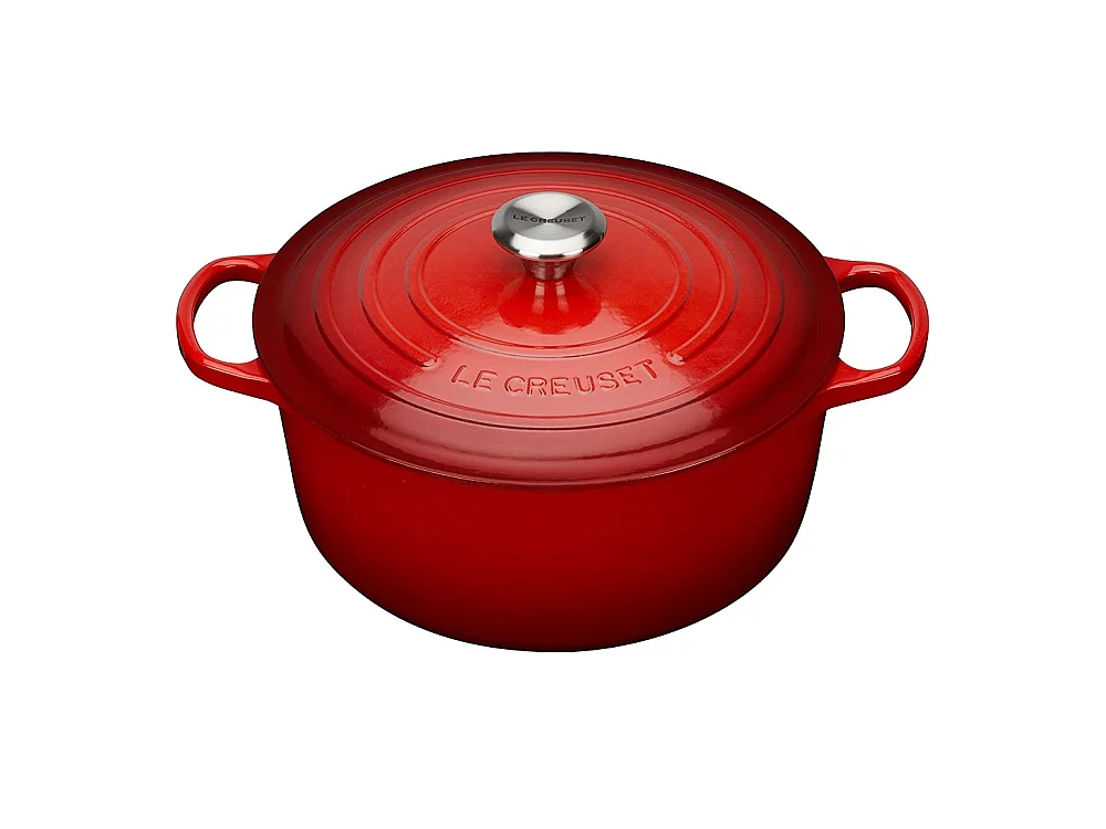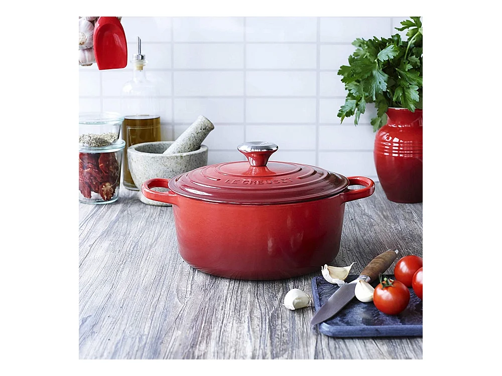 Cocotte redonda de ferro fundido esmaltado Signature 28cm Cerise com tampa de aço inoxidável resistente ao calor