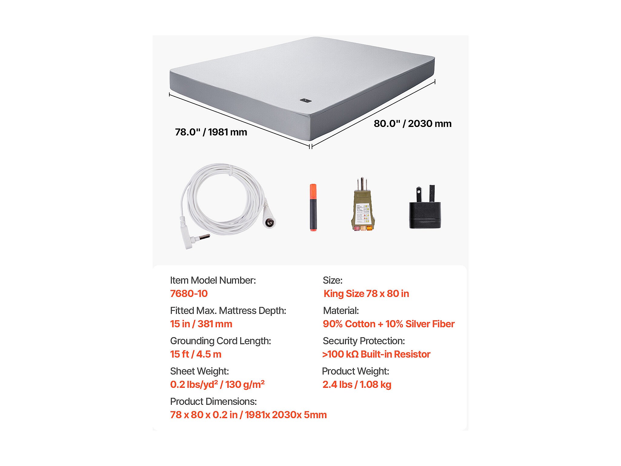 Colcha SucceBuy Lençóis de Ligação à Terra - Tamanho King, 90% Algodão + 10% Fibra de Prata