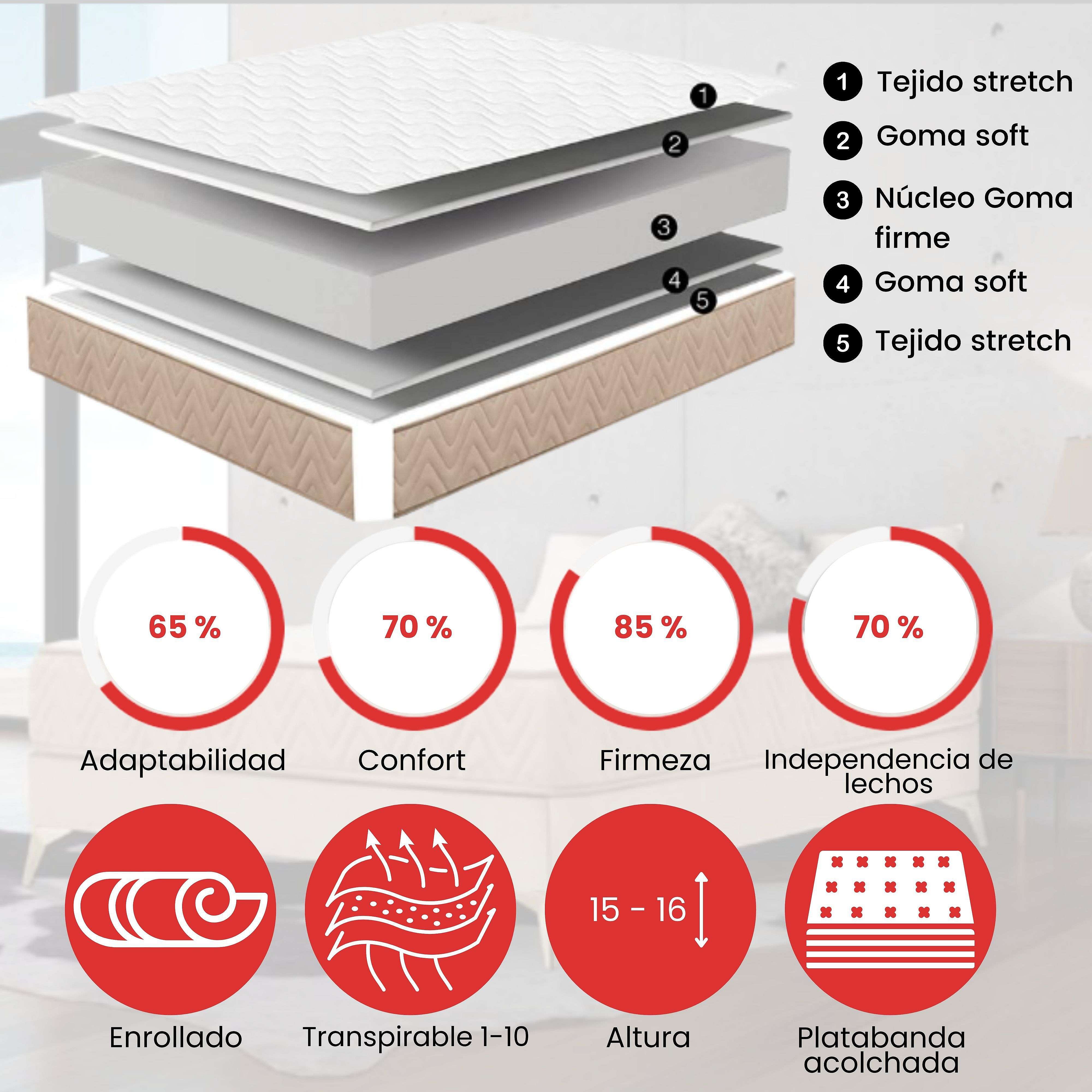 Colchão 135x190 cm Firmeza Média Núcleo Flexível Fibras Naturais