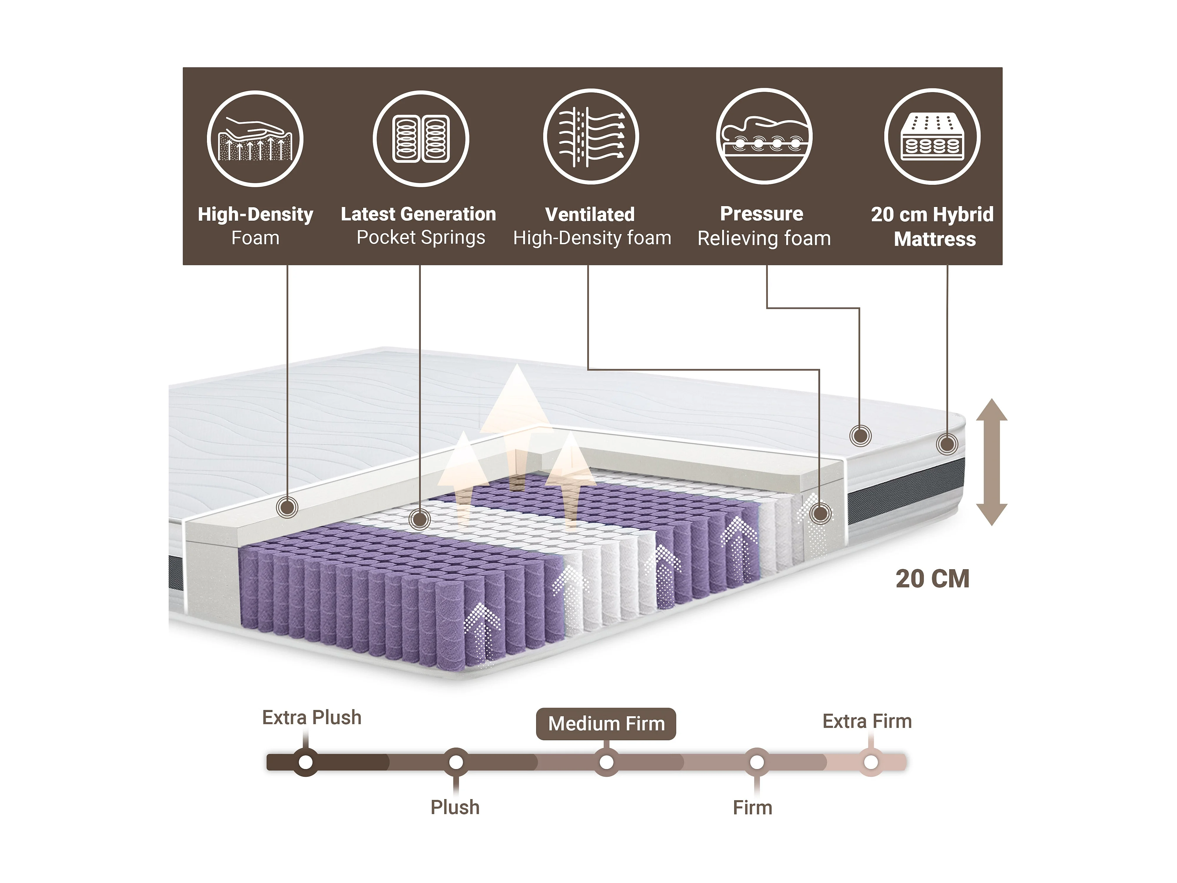 Colchão 160 x 195 molas ensacadas e memória | Altura 20 cm
