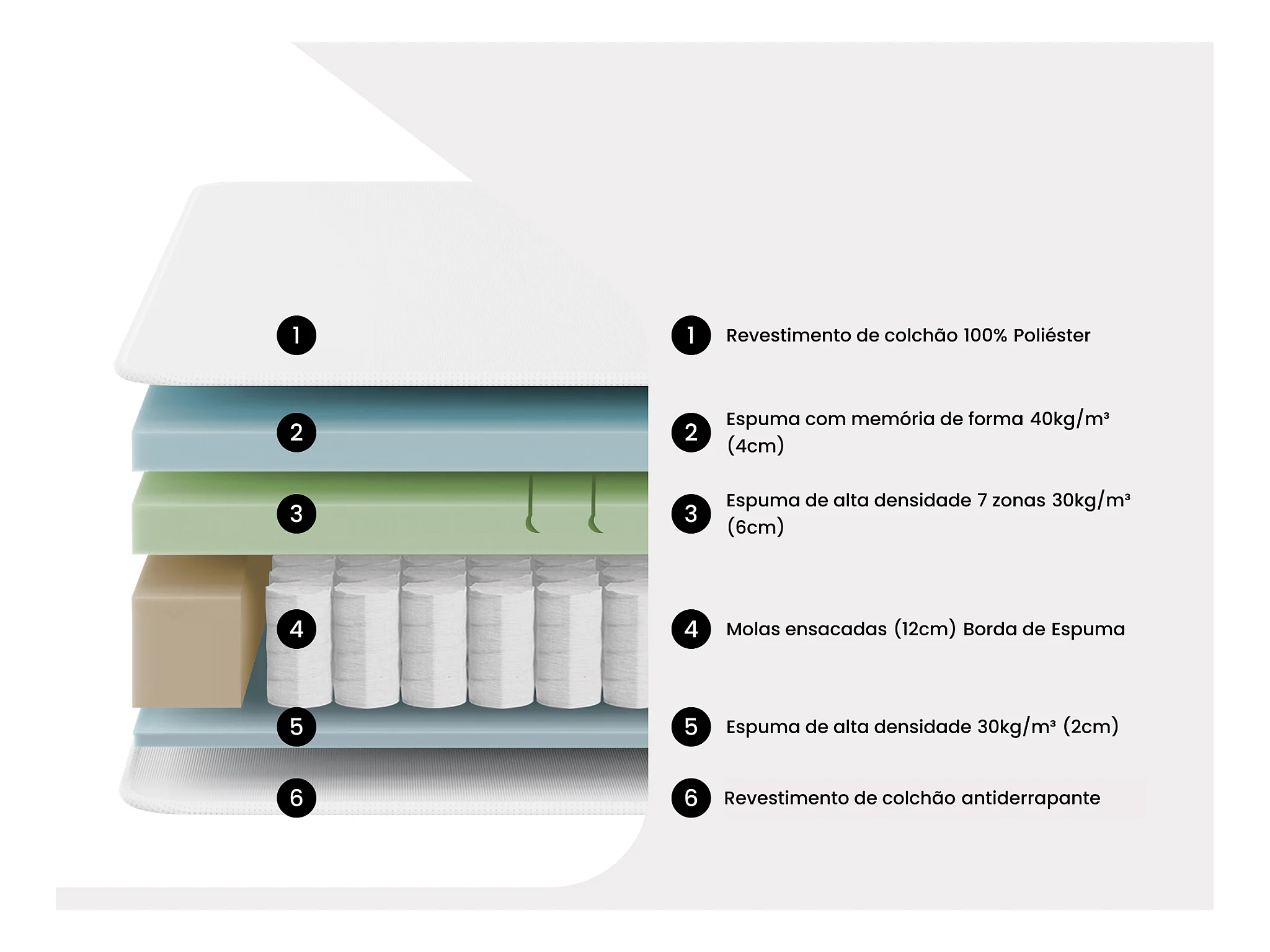 Acolhimento memória de forma duplo e espuma com 7 zonas