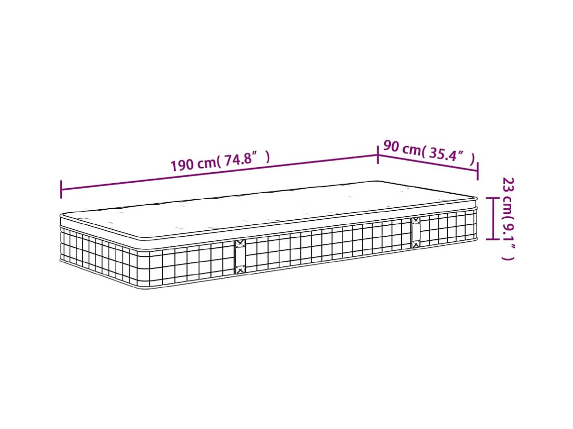 Colchão de molas ensacadas Castanho escuro 90x190x20 cm