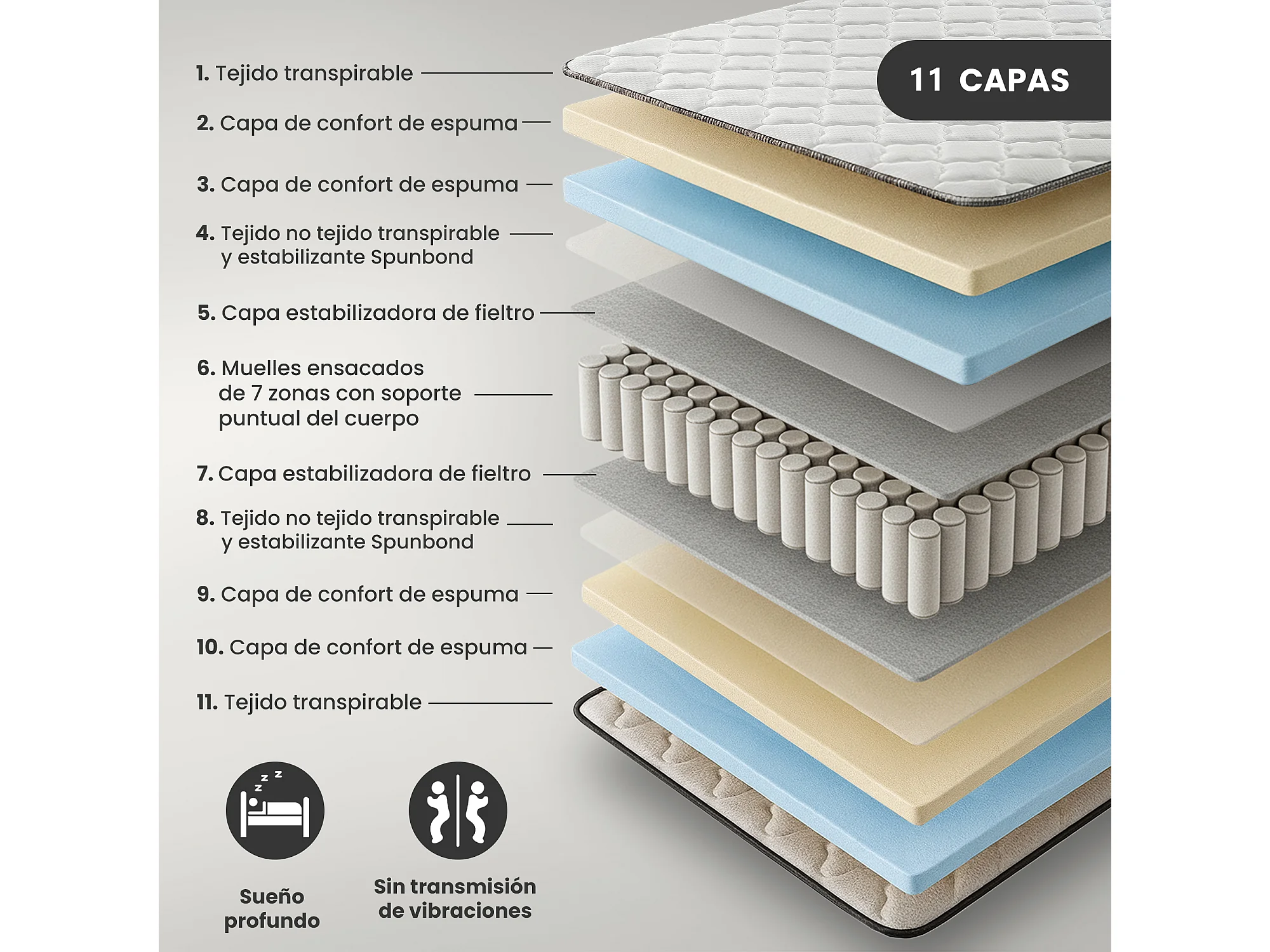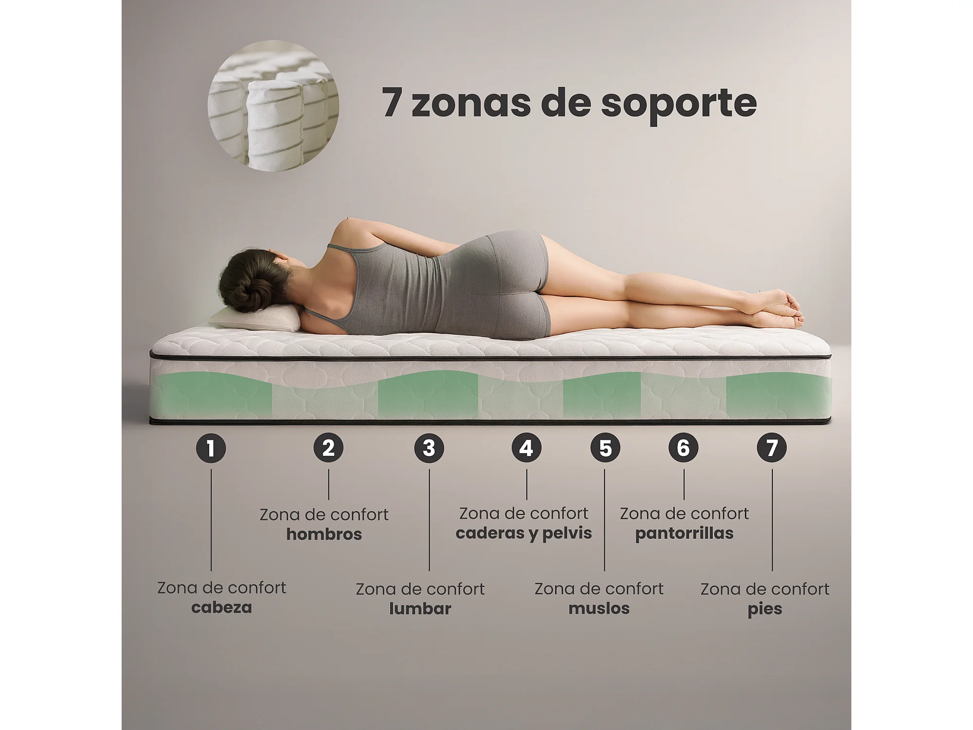 Colchão de molas ensacadas 7 zonas com protetor de colchão H3 180x200 cm