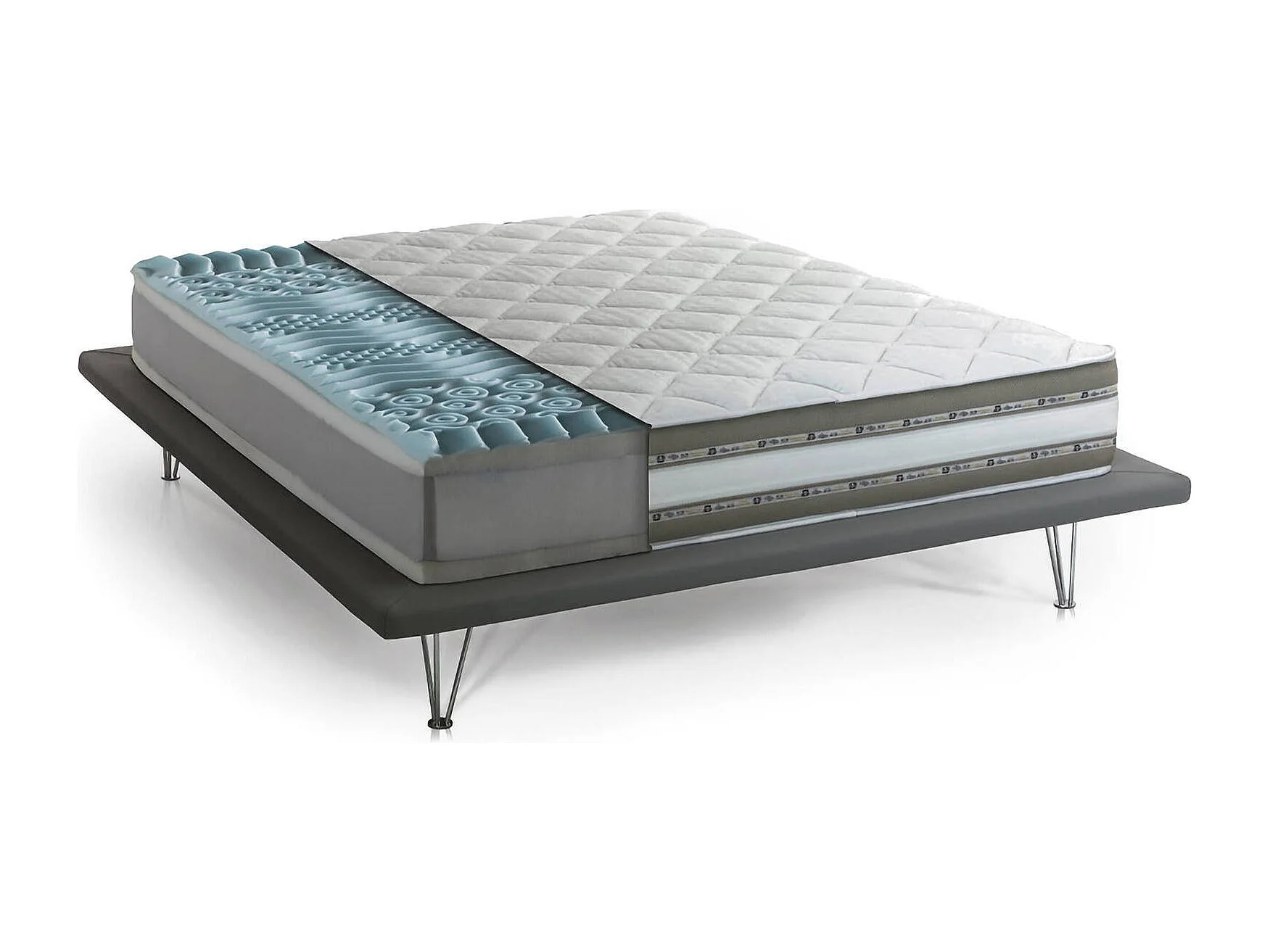 Colchão duplo Dkiwio, colchão removível em Memory Foam e Waterfoam Gel, 100% Fabricado na Itália, Antiácaro e Hipoalergênico, 180x200h27 cm
