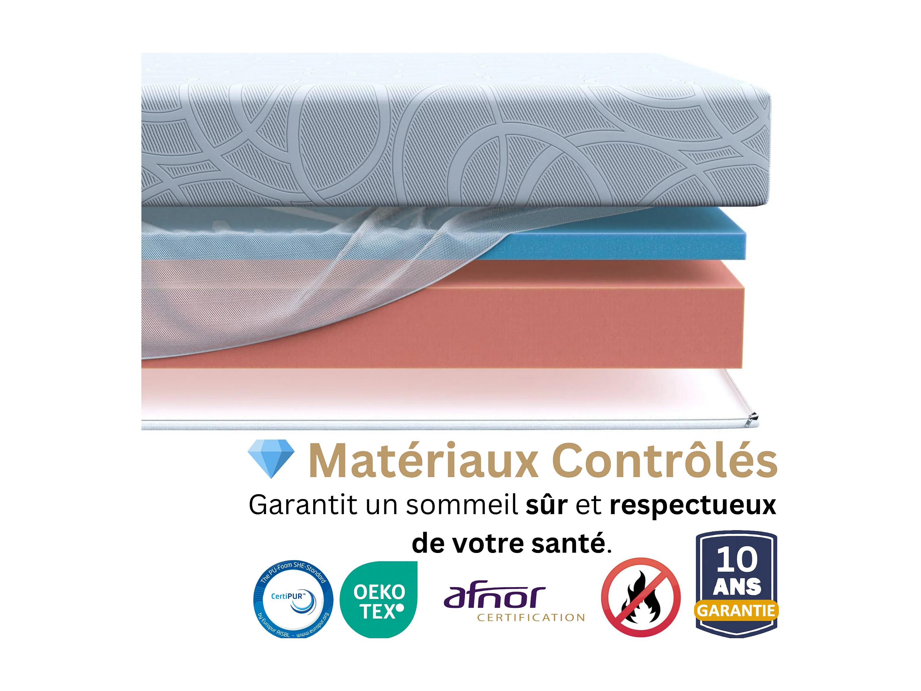 80x200 Colchão Ondine de 1 lugar para crianças e adultos - Espuma viscoelástica de 60 kg/m³ de alta densidade enriquecida com microcápsulas de gel refrescante