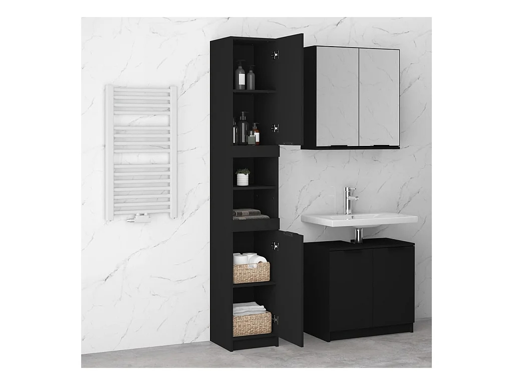 Coluna de casa de banho 30x30x130 cm contraplacado preto PT403489