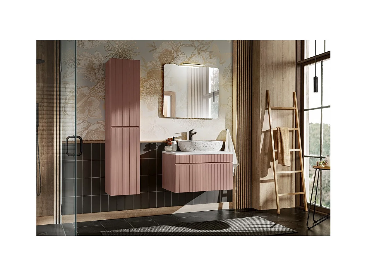 Coluna de banheiro ICON 160 cm – 2 portas – Acabamento rosa empoeirado – Móvel suspenso moderno