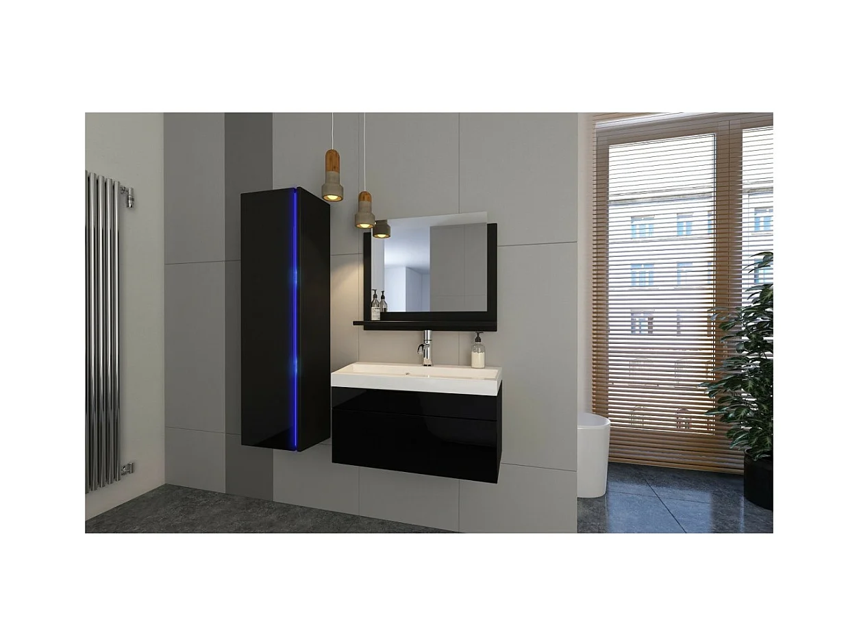 Coluna de banheiro suspensa, coleção OWL, cores preto fosco e preto brilhante, ideal para um banheiro design.