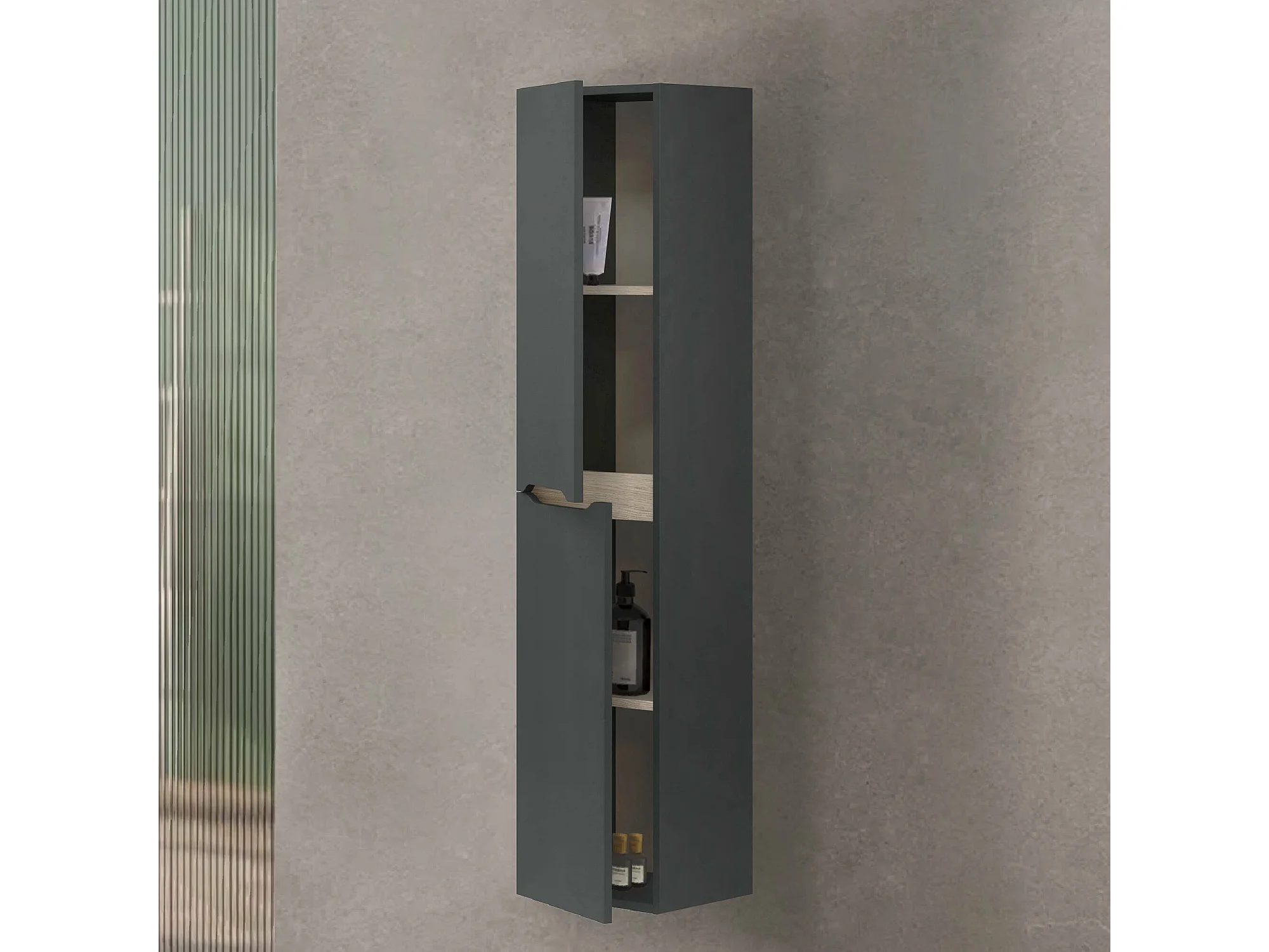 Coluna de banheiro Williamsburg, Móvel suspenso de banheiro com 2 portas, Roupeiro alto, 31x26h135 cm, Antracite e Carvalho
