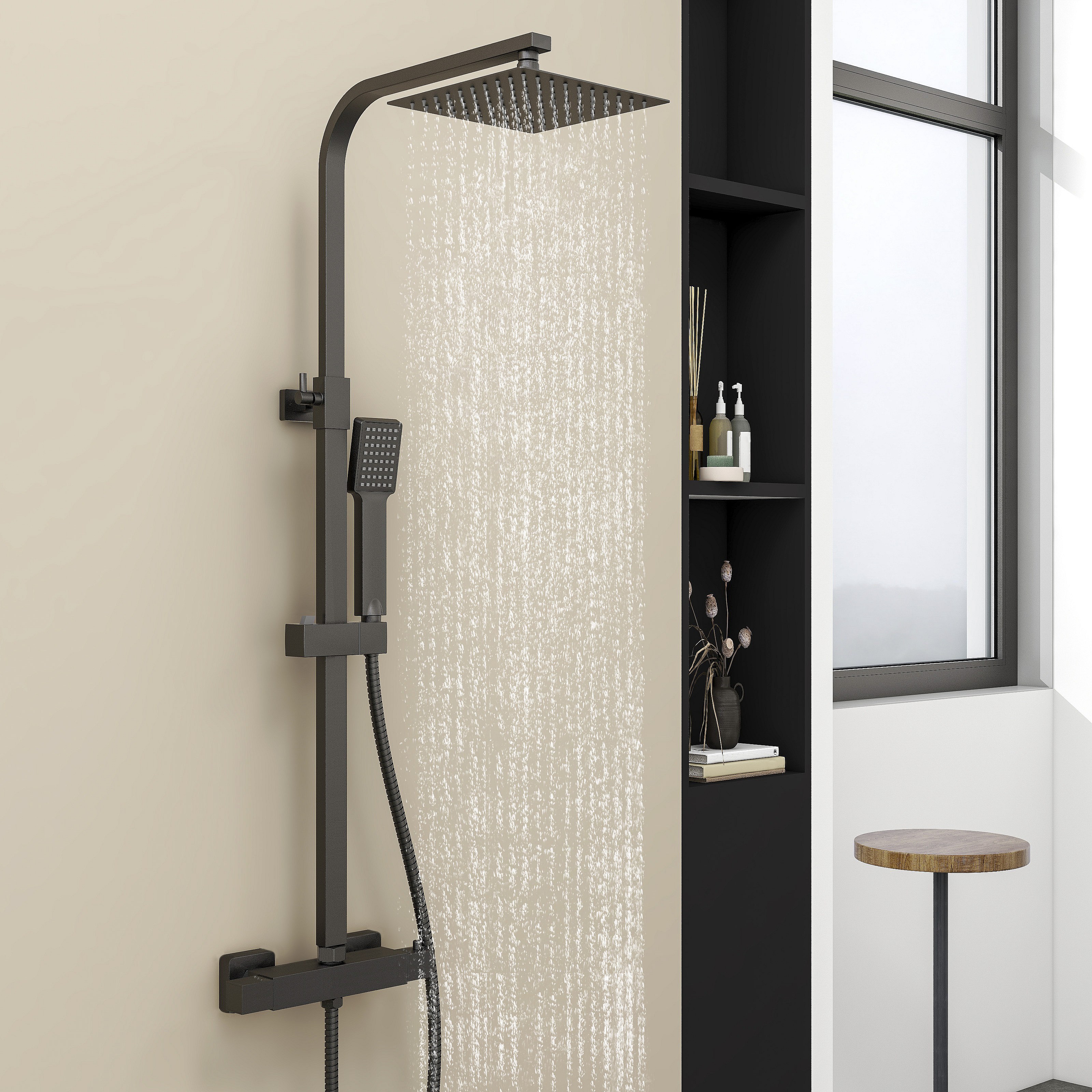 Coluna de chuveiro termostático Aica preto fosco quadrado 768-1200mm para banheiro
