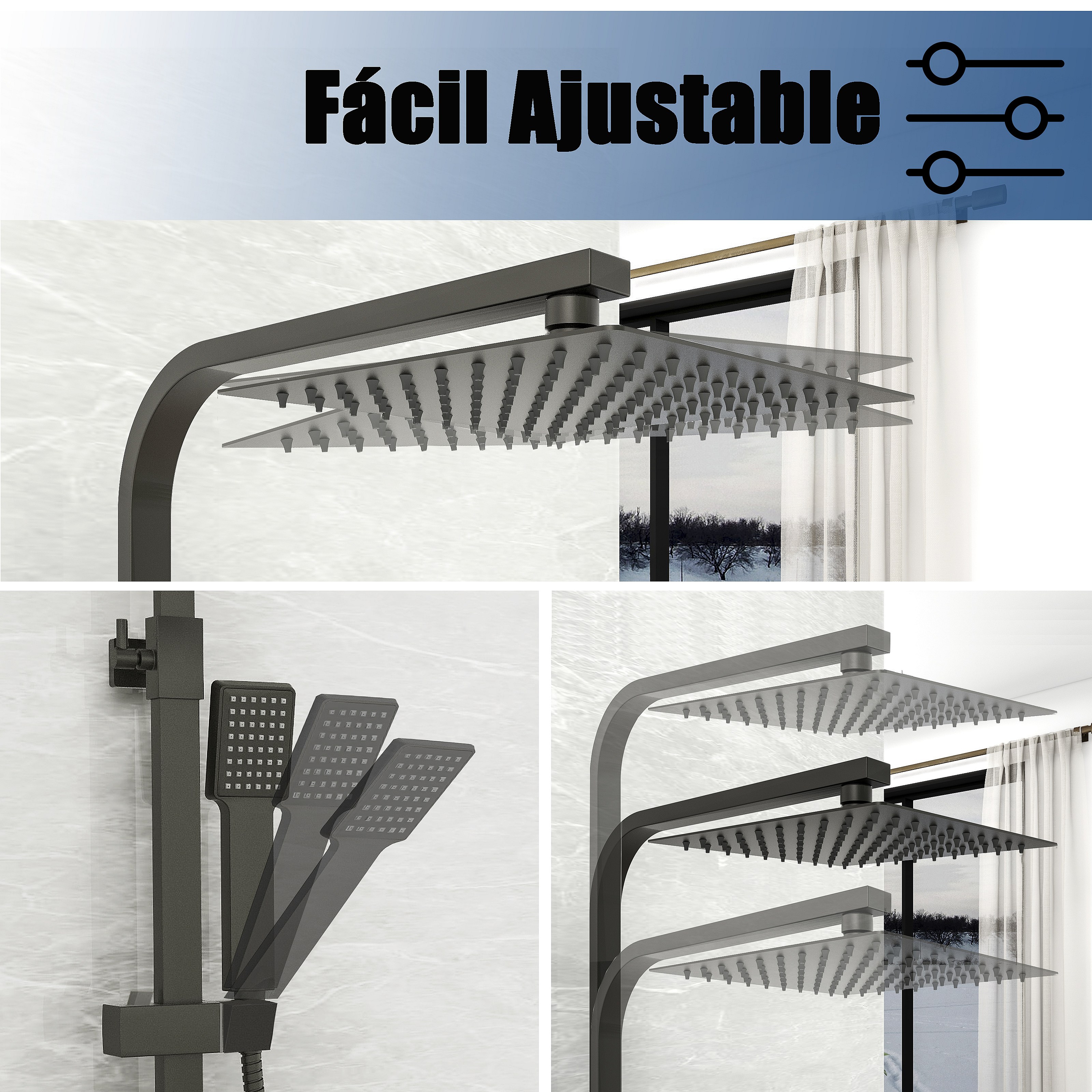 Coluna de ducha termostática Aica 38℃ preto fosco 80-120cm para banheiro