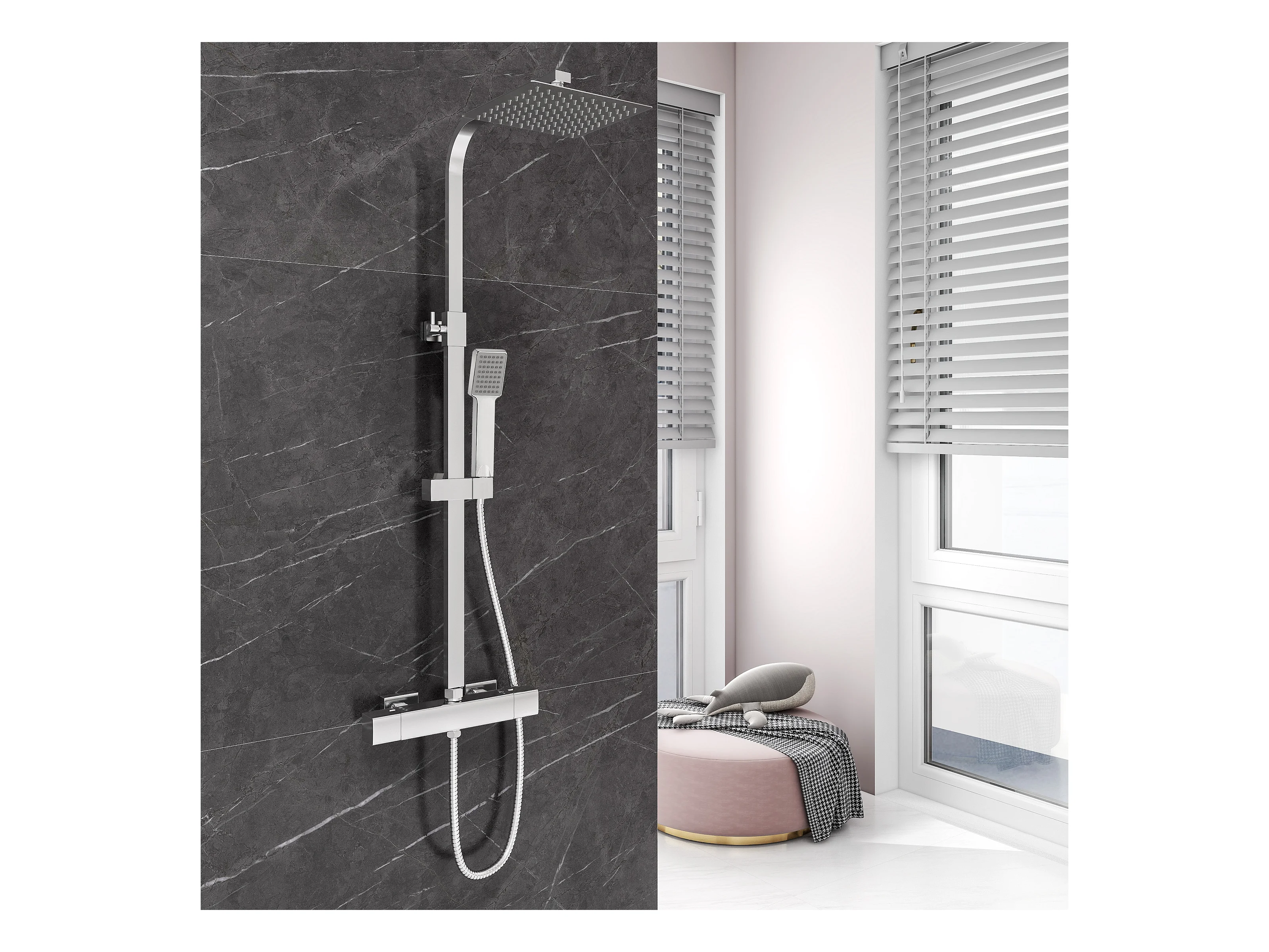 Coluna de chuveiro Aica 80-120cm quadrada prateada termostática coluna de chuveiro termostática com chuveiro de mão e chuveiro de mão