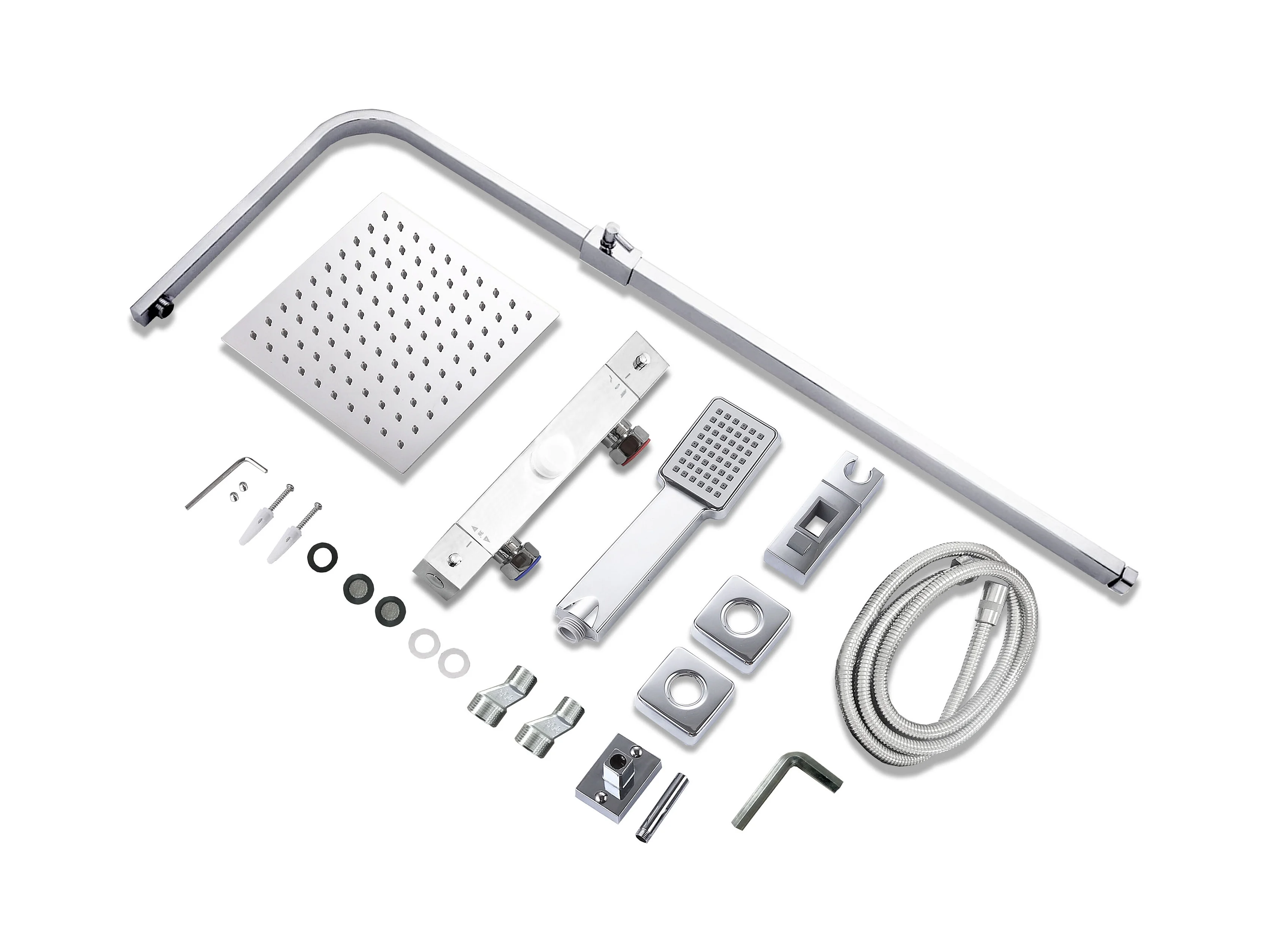 Aica termostática prata quadrada coluna de chuveiro termostática chuveiro de aço inoxidável com barra de aço inoxidável