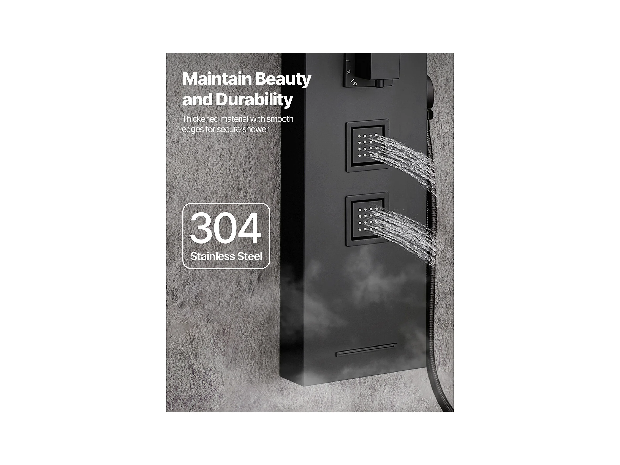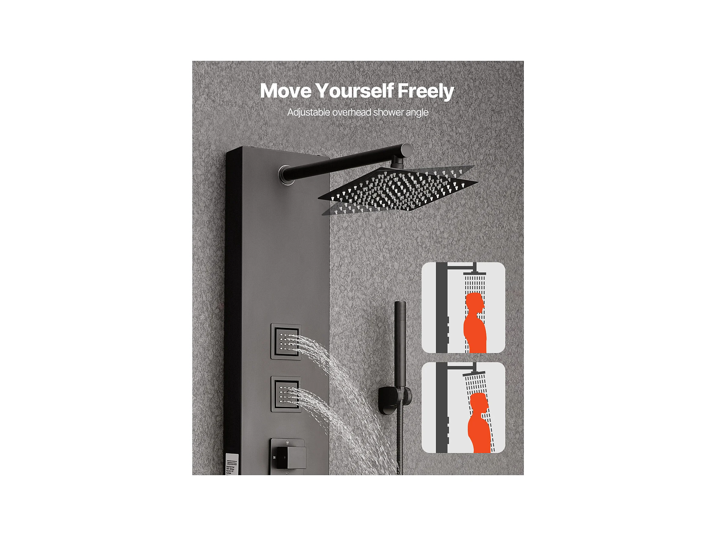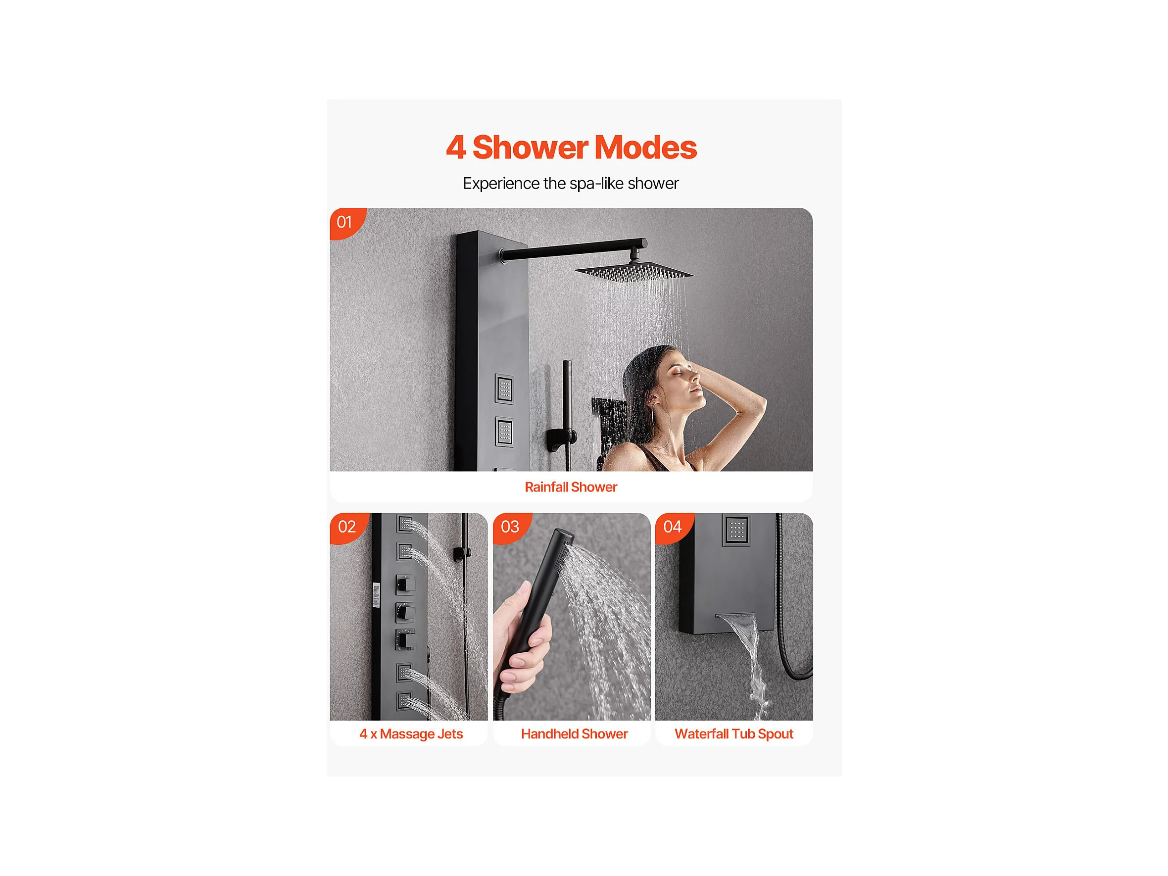 Coluna de Duche com Chuveiro Efeito Chuva SucceBuy em Aço Inoxidável, Torneira 4 Funções, 4 Jatos Corporais, Chuveiro de Mão e Bico de Banheira
